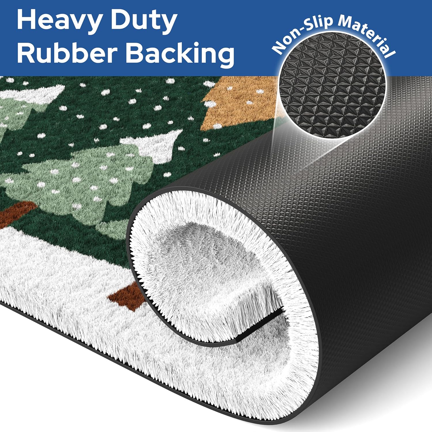 - Slip-Proof Christmas Mat - Our non-slip rubber backing keeps the welcome door mat securely in place, preventing slips and falls. Whether you have a concrete, stone, or wooden porch, our exterior door mat outside entrance rug will stay put and keep your visitors safe.
