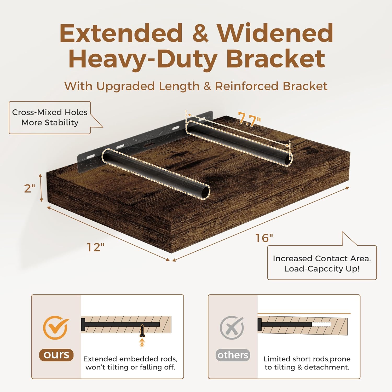 - ăFARMHOUSE RUSTIC WALL SHELFăThese floating shelves are made of premium engineered wood board and invisible one-piece bracket. The rustic wooden grain surface add character and warmth to any modern or traditional interior with these thick floating shelves, contrast shelves at staggering heights on the wall or mount side-by-side or in the corner for a clean streamlined look.