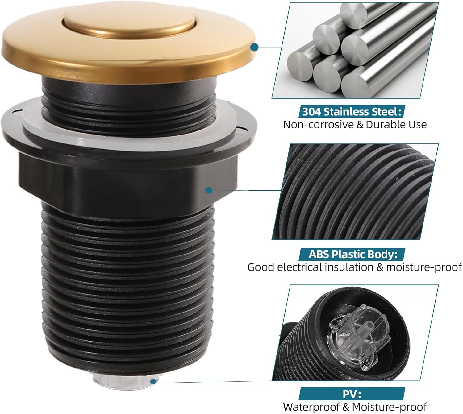 RQYEKDO Garbage Disposal 32mm/1.26 inch Air Switch Kitchen Sink Top Long Stainless Steel Polished Nickel Long for Food and Waste Disposal On/Off Air Button Parts…