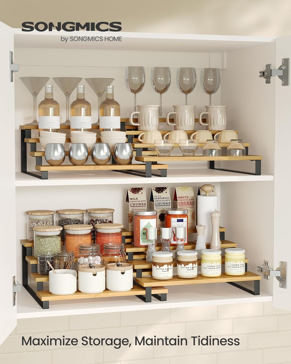 - 【FIND AT A GLANCE】With its specially designed tiered structure and each tier being 3" deep, this display riser ensures all your spice jars and items are clearly visible and easily accessible, preventing messes and keeping your kitchen organized