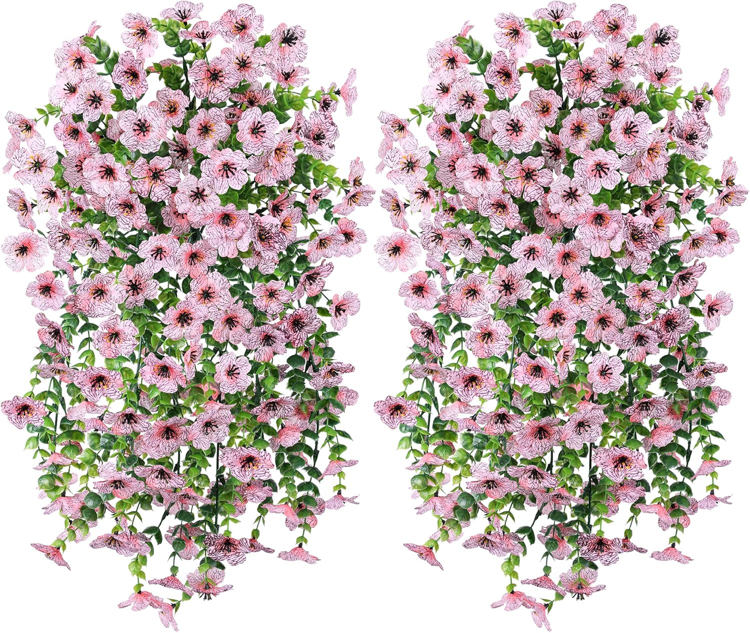 Artificial Faux Outdoor Outside Flowers Plants, 2 PCS Fake Silk UV Resistant Look Real Pink Daisy Trailing Vines for Front Door Porch Planter Urn Patio Balcony Decoration