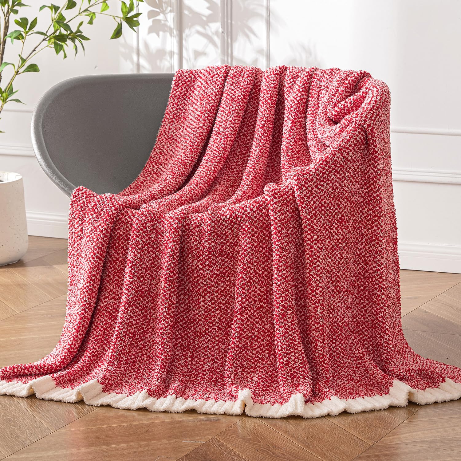MIULEE Red Super Soft Throw Blanket for Couch, Cozy Fluffy Warm Blankets Lightweight Knit Throw Blankets for Sofa, Bed, Chair, Living Room, Camping, Picnic, 50 x 70 inch
