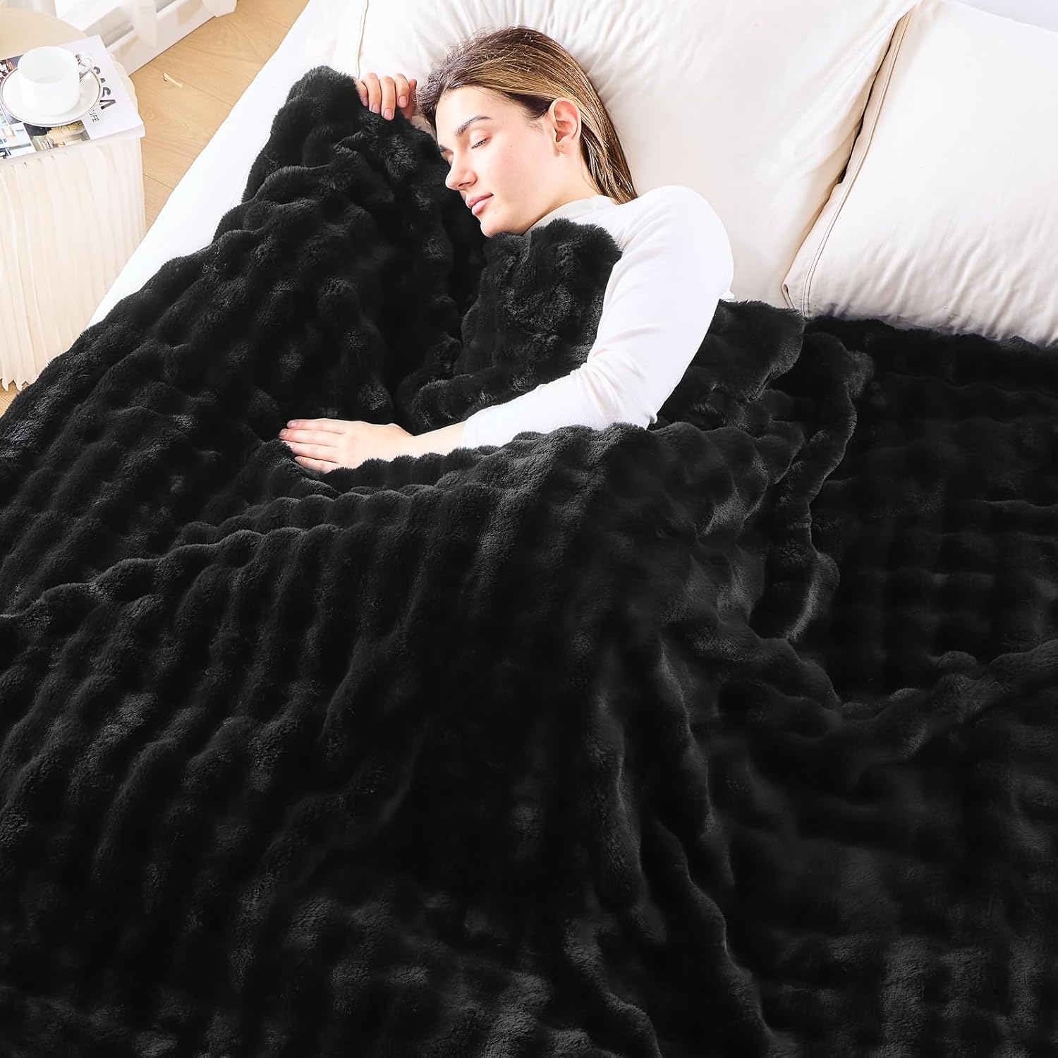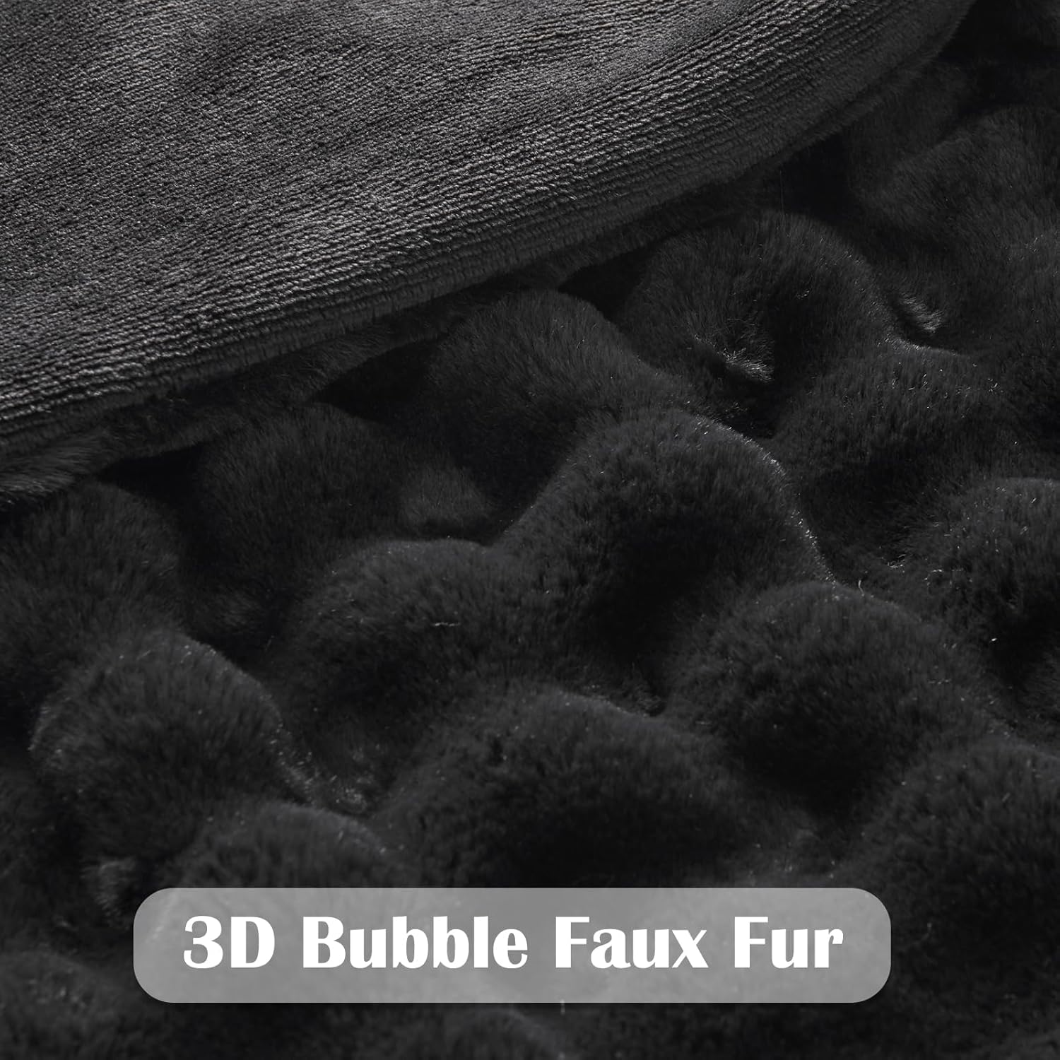 NEWCOSPLAY Faux Fur Twin Blanket Black Bubble Blanket Thick Warm Soft for Couch Sofa Bed 550GSM (Black, Twin(60"x80"))