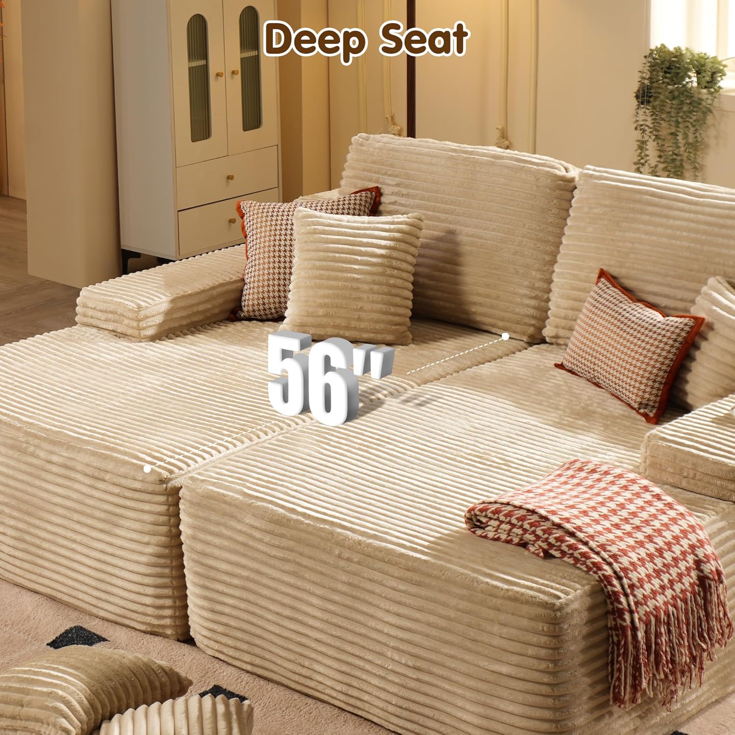 ovios 81" Oversized Sectional Double Lounge Chaise with Cloud Plush Sofa Bed, No Assembly Required, Fluffy Modern Sleeper Loveseat Chair for Indoor Living Room Bedroom Reading, Beige (Plush Fabric)