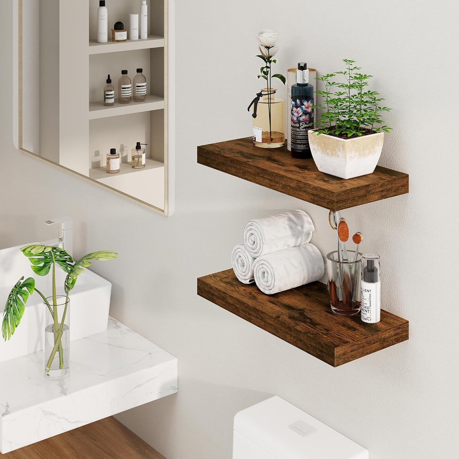 Floating Shelves, 8 Inch Deep Floating Shelves, 24"W x 8"D Wall Shelves Set of 2, Rustic Wood Floating Shelf for Home Decor, Deep Storage Shelves for Kitchen, Bedroom, Living Room, Rustic Brown