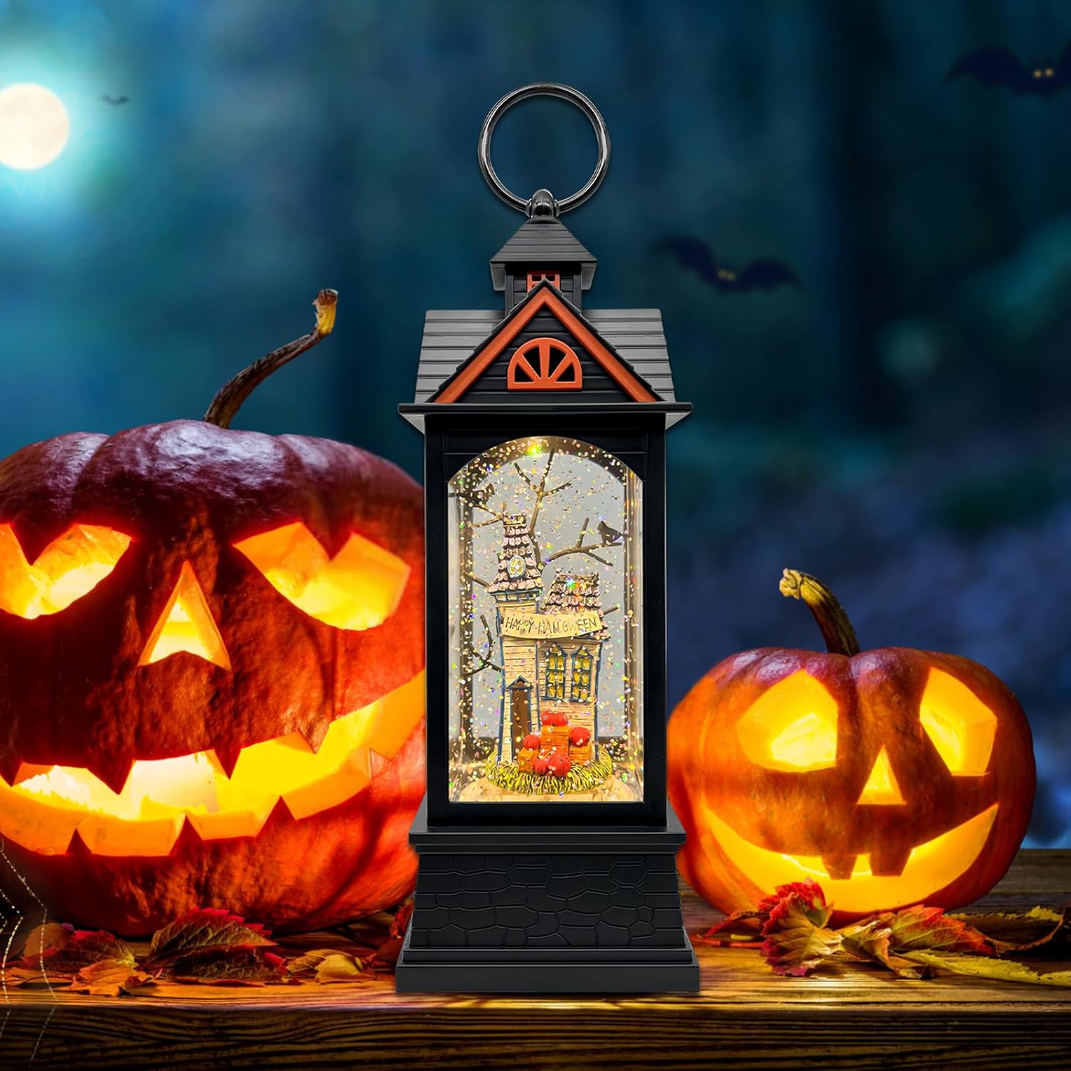 Halloween Snow Globe Lantern with 6 Hour Timer,Halloween Decorations Indoor for Home,Halloween Decor,USB or Battery Powered for Halloween Lanterns,Halloween Spooky Town