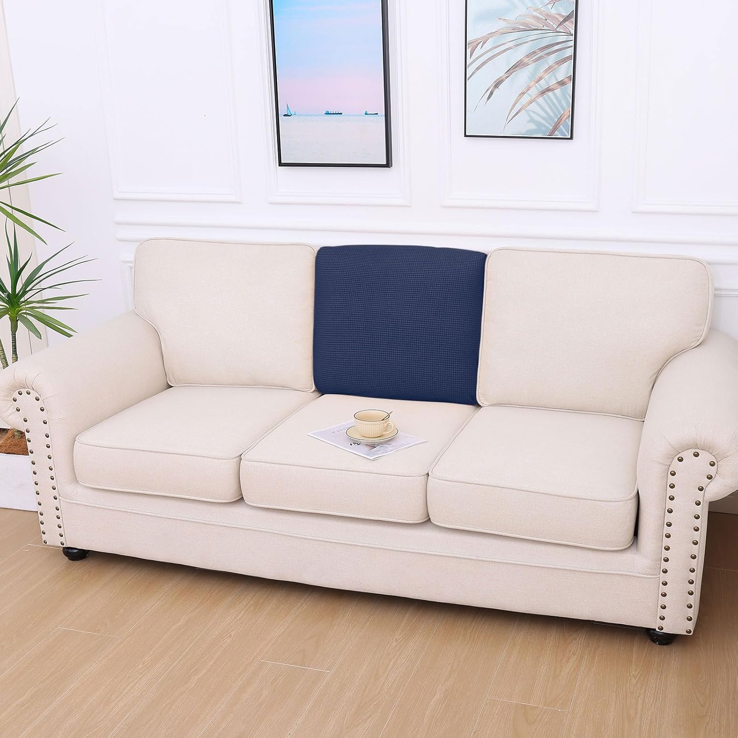 - [Stay in Place] The unique elastic band design makes the individual couch cushion covers more fit the cushion, easier to install, and more concise in appearance. Even if the child bounces on the sofa, the pet plays on the sofa, or sleeps on the sofa, the waterproof cushion covers remains on the sofa or chair.