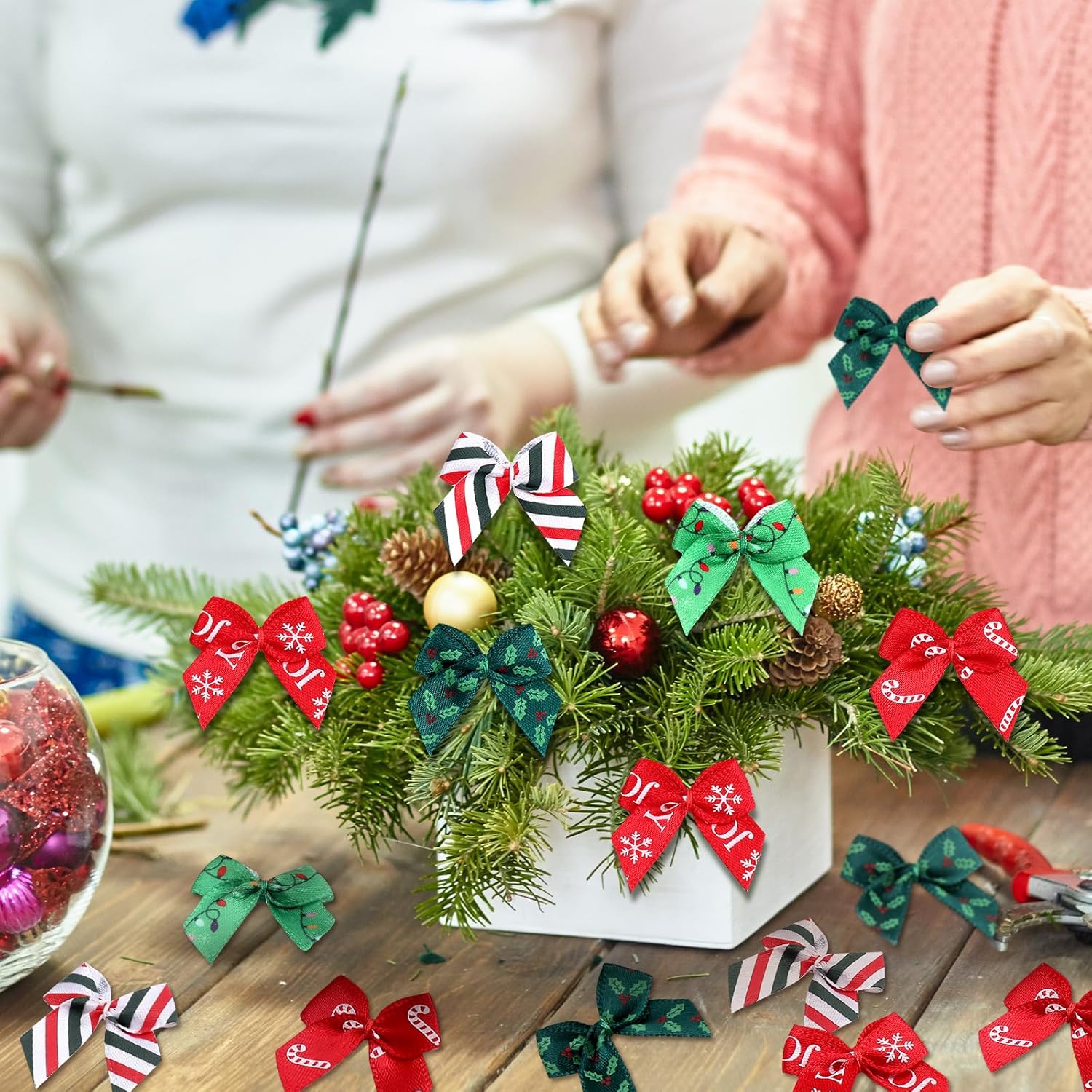 - Charming appearances: our handmade craft ribbon bows are featured with charming appearances, and the patterned design is full of Christmas elements, the tiny shape will give people an exquisite feel as well, so they can add more elegance to your parties or houses, creating a more joyful and happy atmosphere