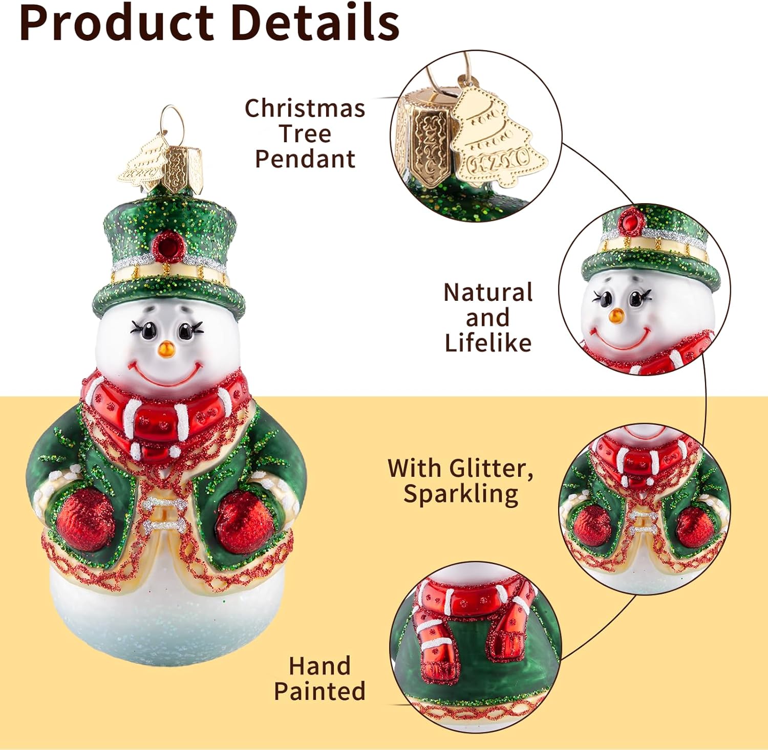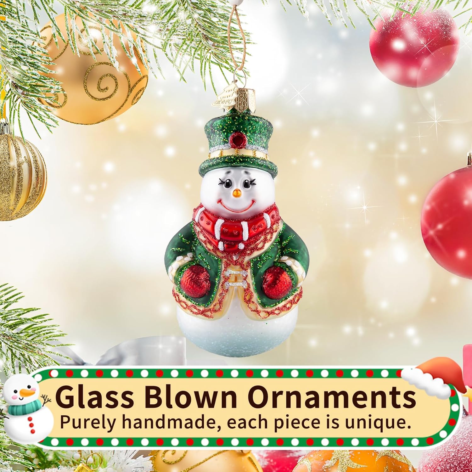 - Traditional Hand-Blown Glass: The Christmas ornaments originated from traditional art in the 19th century, where molten glass is blown into exquisitely carved molds and intricate details are hand drawn by skilled craftsmen. Every snowman is unique, making it a valuable and unique creative artwork