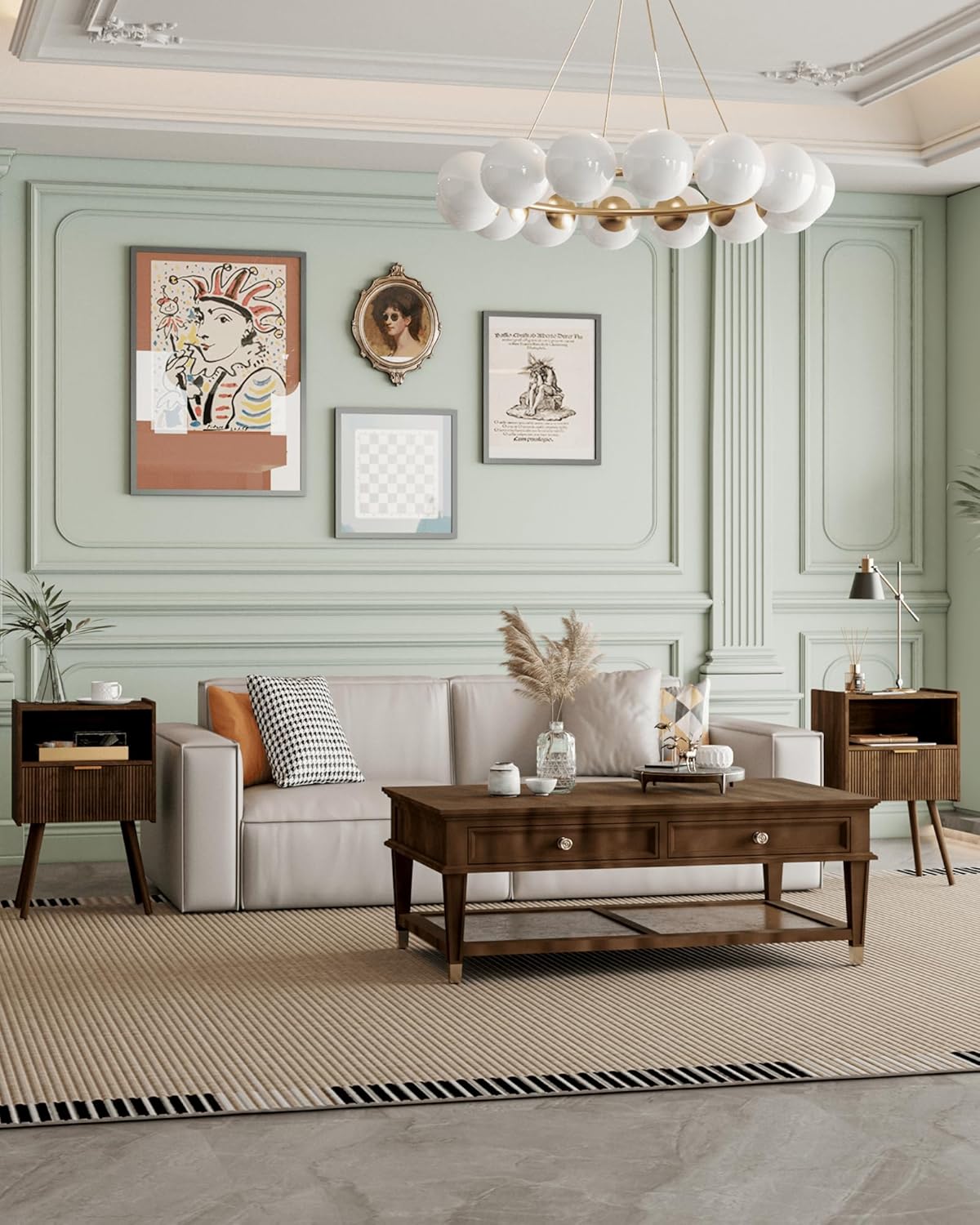 Nightstand,Modern Bedside Table with Storage Drawer and Open Wood Shelf, Accent Night Stand with Solid Wood Legs for Living Room, Bedroom and Small Spaces,Easy Assembly (Walnut Brown)