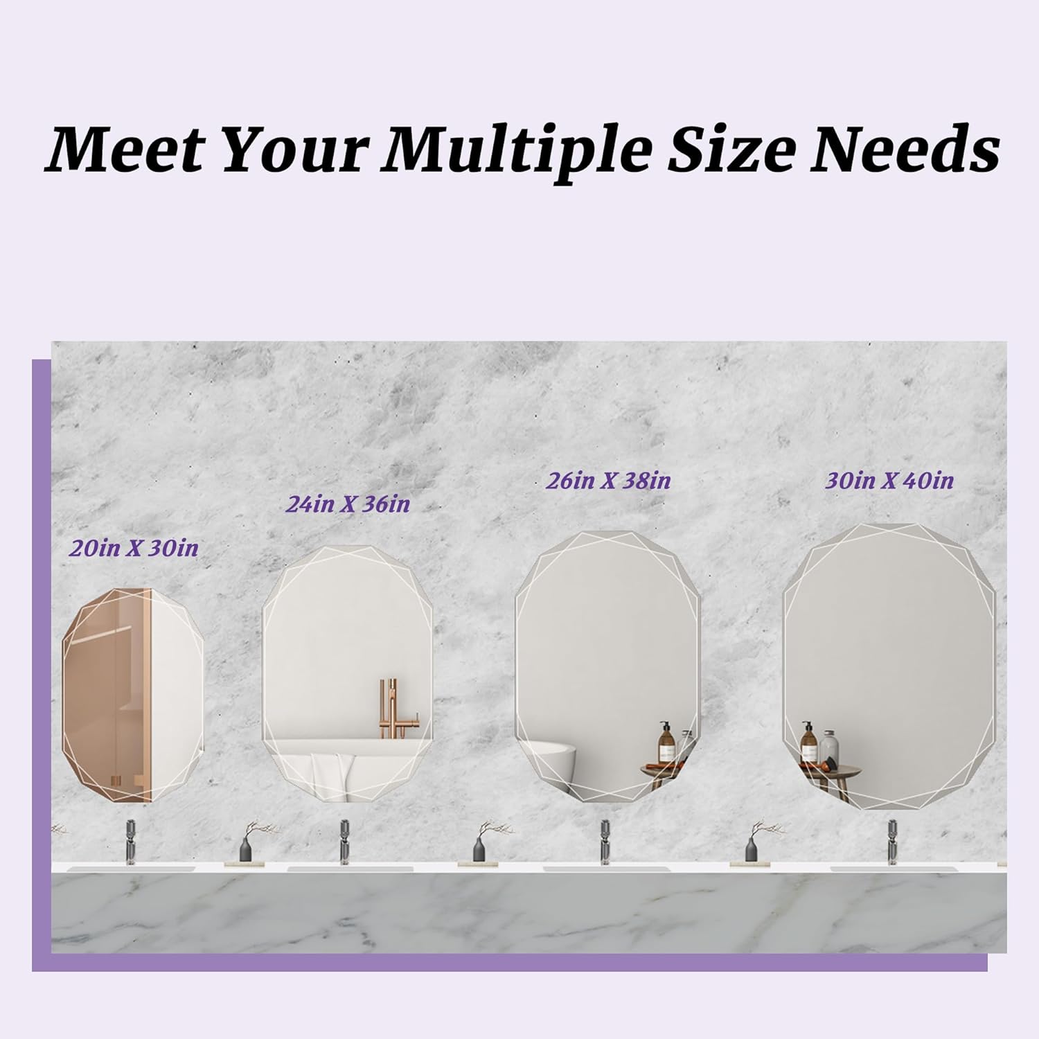 Bathroom Mirror for Wall, 30" x 40" Oval Mirror, Bathroom Vanity Mirror, Wall Mount Vanity Mirrors, Beveled Edge Frameless Wall Mirrors Decorative, Irregular Beveled Edge Mirror