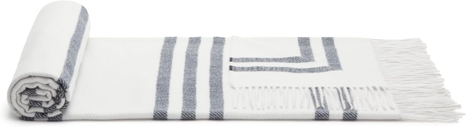 Amazon Basics Room Décor Throw Blanket, Lightweight and Cozy in Recycled Polyester, Light Grey With Blue Stripes, 50"x 60"
