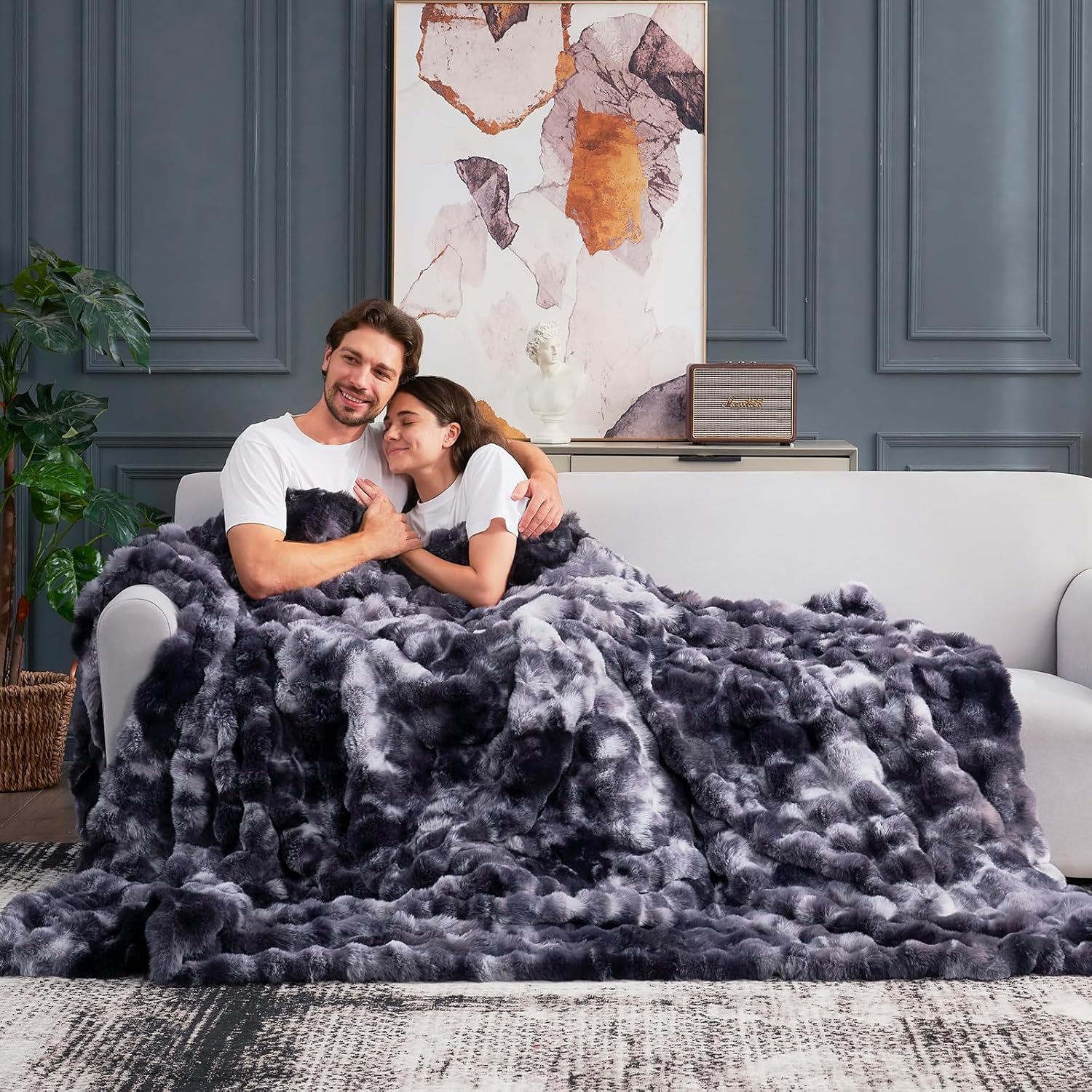 - Experience ultimate comfort and warmth with our Bubble Shape Faux Fur Throw Blanket. Made with 450GSM fluffy faux rabbit fur face side and silky micromink fleece inside, this throw blanket is ultra soft and cozy on both sides. The selected fabric weight provides the perfect balance of warmth without causing overheating, making it ideal for cold moment.