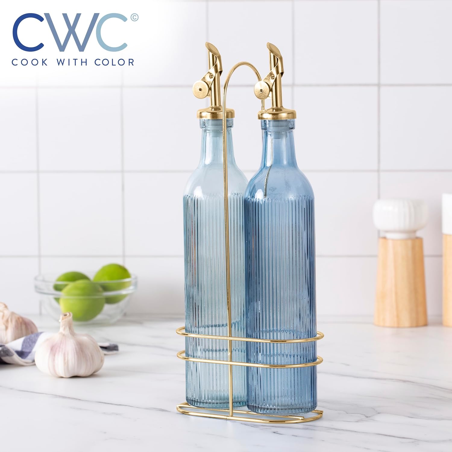 COOK WITH COLOR Glass Olive Oil Bottle Dispenser - 2 Pack- 17oz Oil and Vinegar Cruet - Olive Oil Carafe Decanter for Kitchen