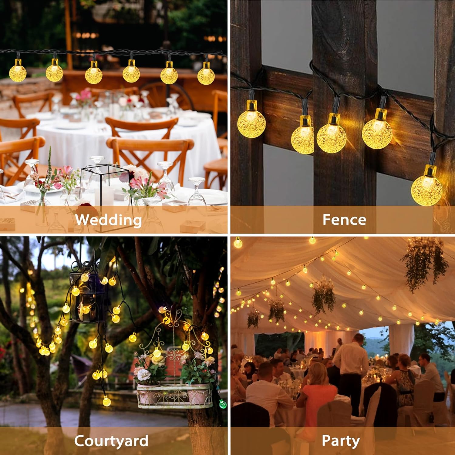 - 【Easy to install and versatile】No wires or other tools are needed to install this garden light. Simply install the solar decorative lights in your garden and turn on the switch, which emits soft and warm light, creating a romantic holiday atmosphere. Suitable for outdoor decorations in yards, backyard, terrace, pergola, balcony, porch, roof, tree, deck, barbecue, umbrella, fence, Bistro, restaurant Christmas, holiday, wedding, party and other celebration occasions.
