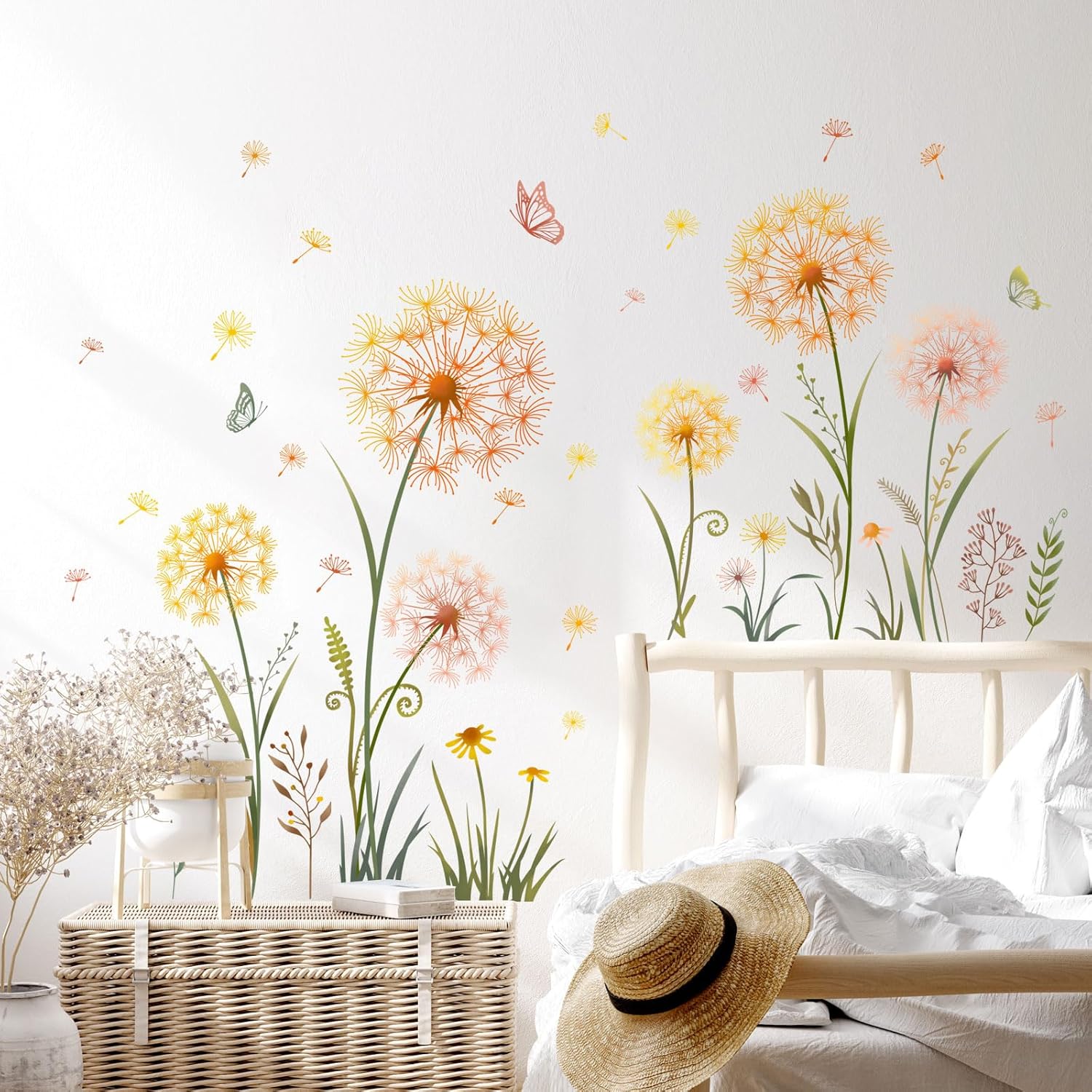 - 【Reliable Material】: This dandelion flower wall stickers are made of high-grade vinyl material with a removable adhesive. It's easy to peel and stick, durable, waterproof and removable without any sticky residue or marks.⭐Vinyl wall decals are removable but not re-positionable.