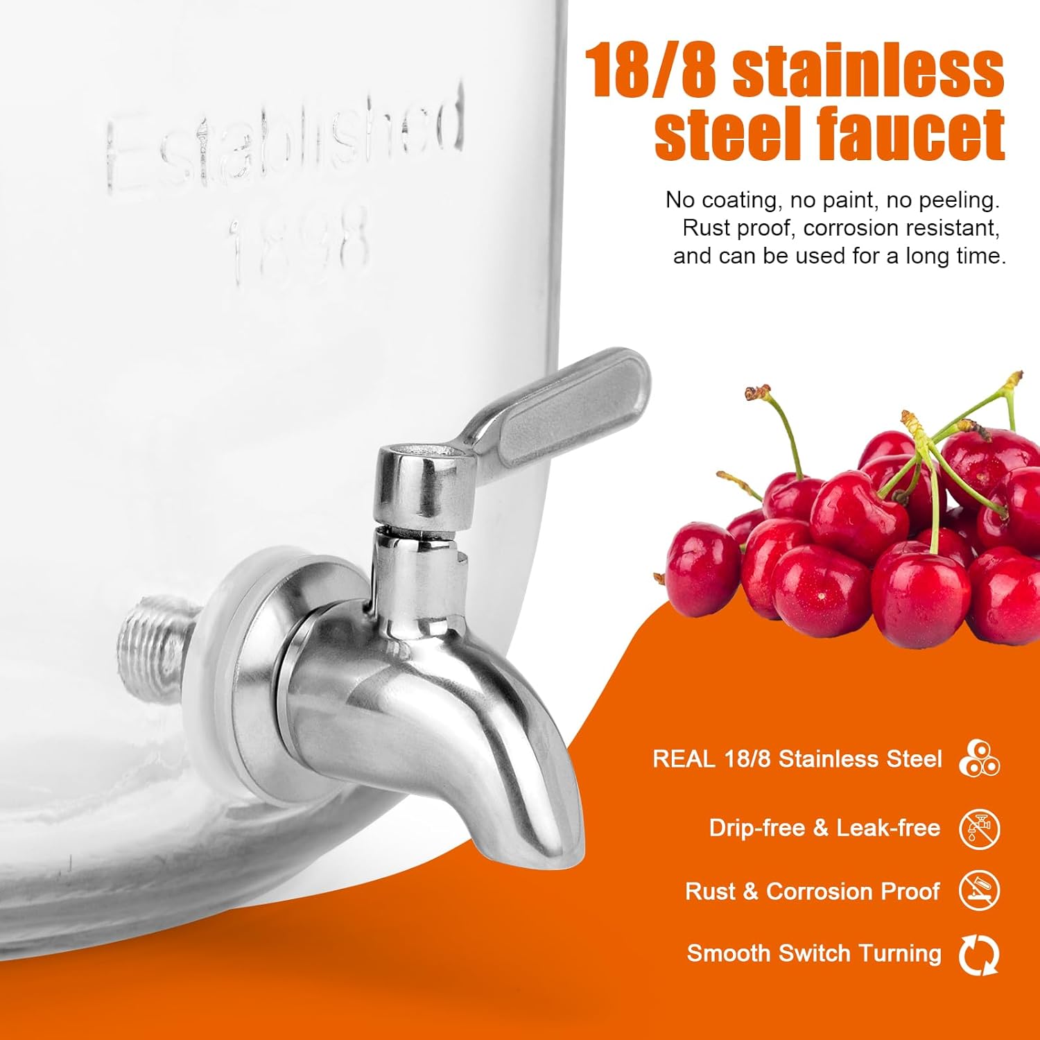 - Package Include:2 Glass Drink Dispenser ,2 Stainless Steel Spigots and Metal Bracket,1 Orange Ring Used As A Wrench.