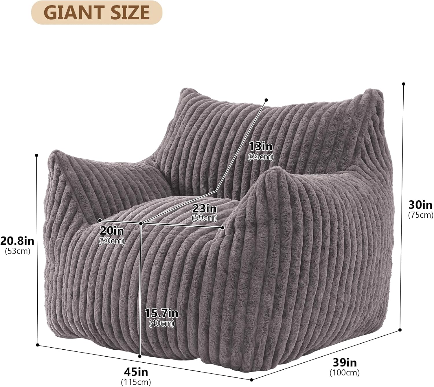 Giant Bean Bag Chairs for Adults with Filling Plush Fluffy Bean Bag Chairs for Teens with Armrests Comfy BeanBag Lazy Couch Sofa Chair for Bedroom Living Room Reading
