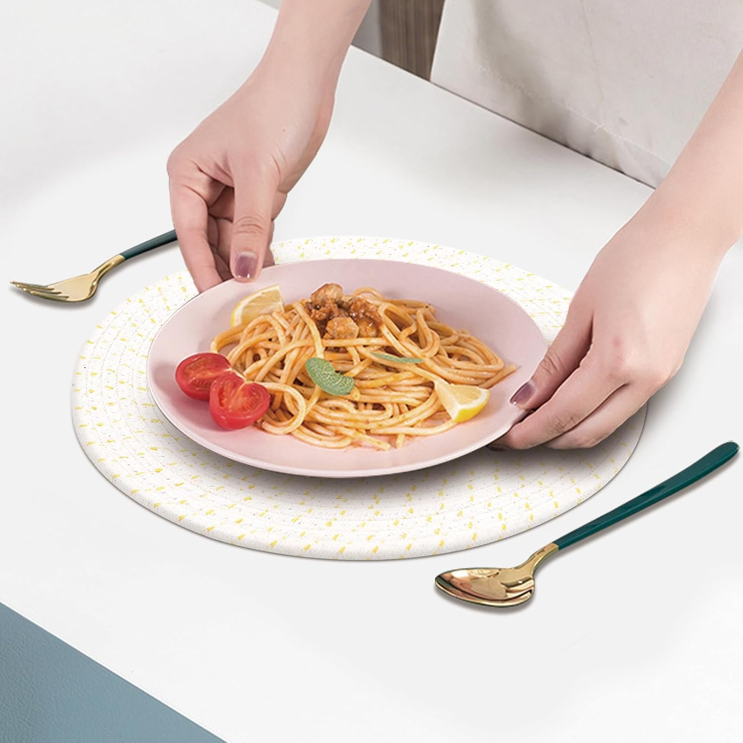 - Material: Our placemats are made of woven cotton rope, not easy to deform, double sided available. The placemats are wipeable, washable, heat resistant and non slip.