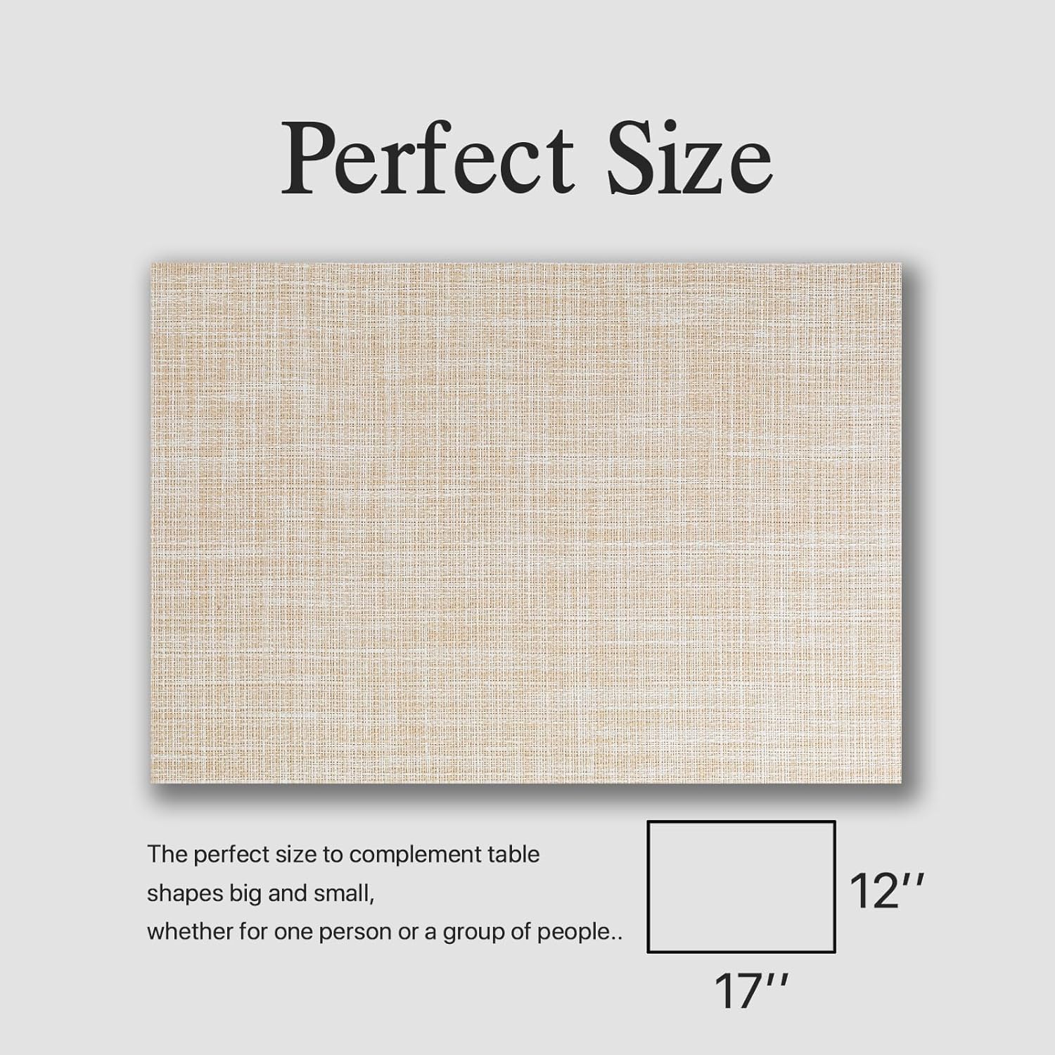 Placemats Set of 6 - Easy Clean Woven Vinyl Placemat for Dining Table, Indoor/Outdoor Place Mats, Washable PVC Table Mats(Beige)