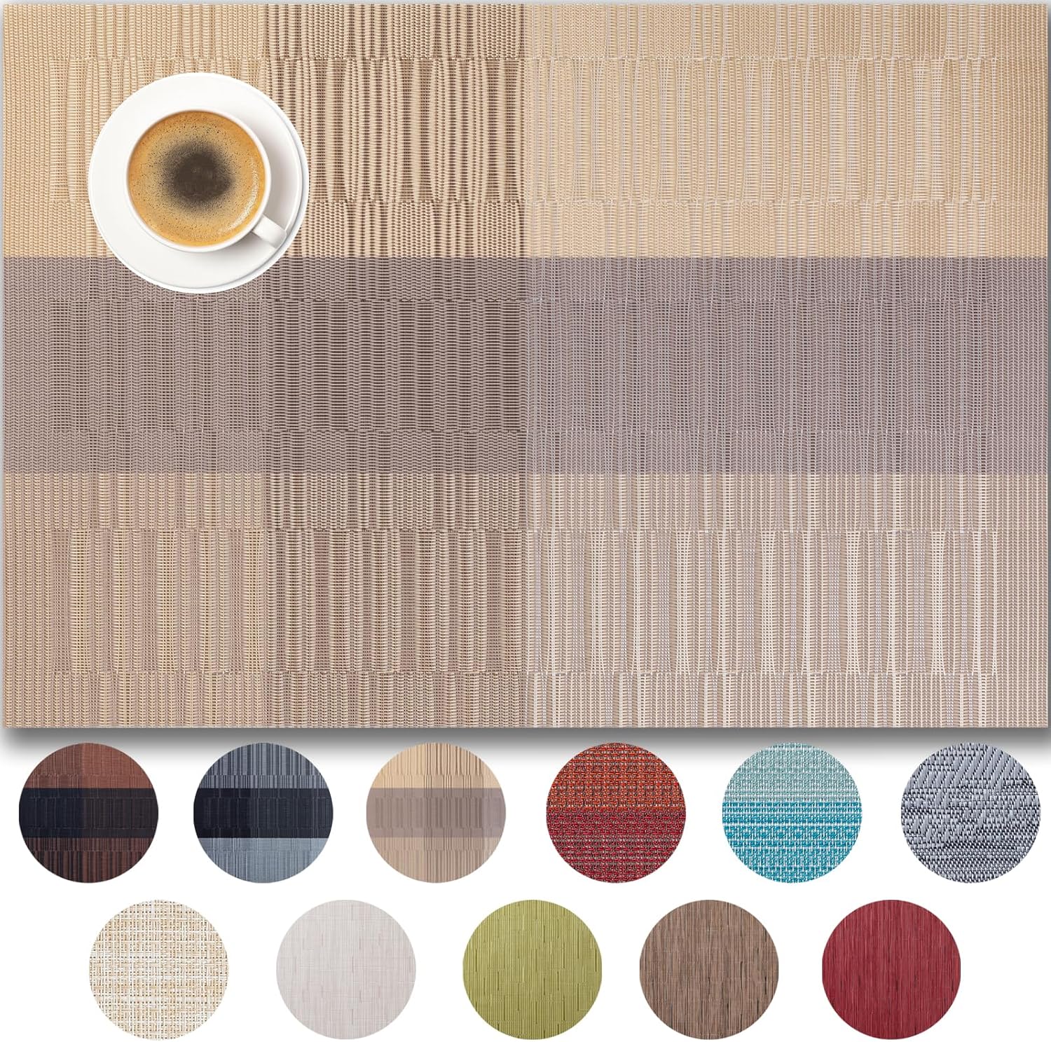 Placemats Set of 4 - Easy Clean Woven Vinyl Placemats for Dining Table, Indoor/Outdoor Place Mats, Washable PVC Table Mats (Gold Dune)