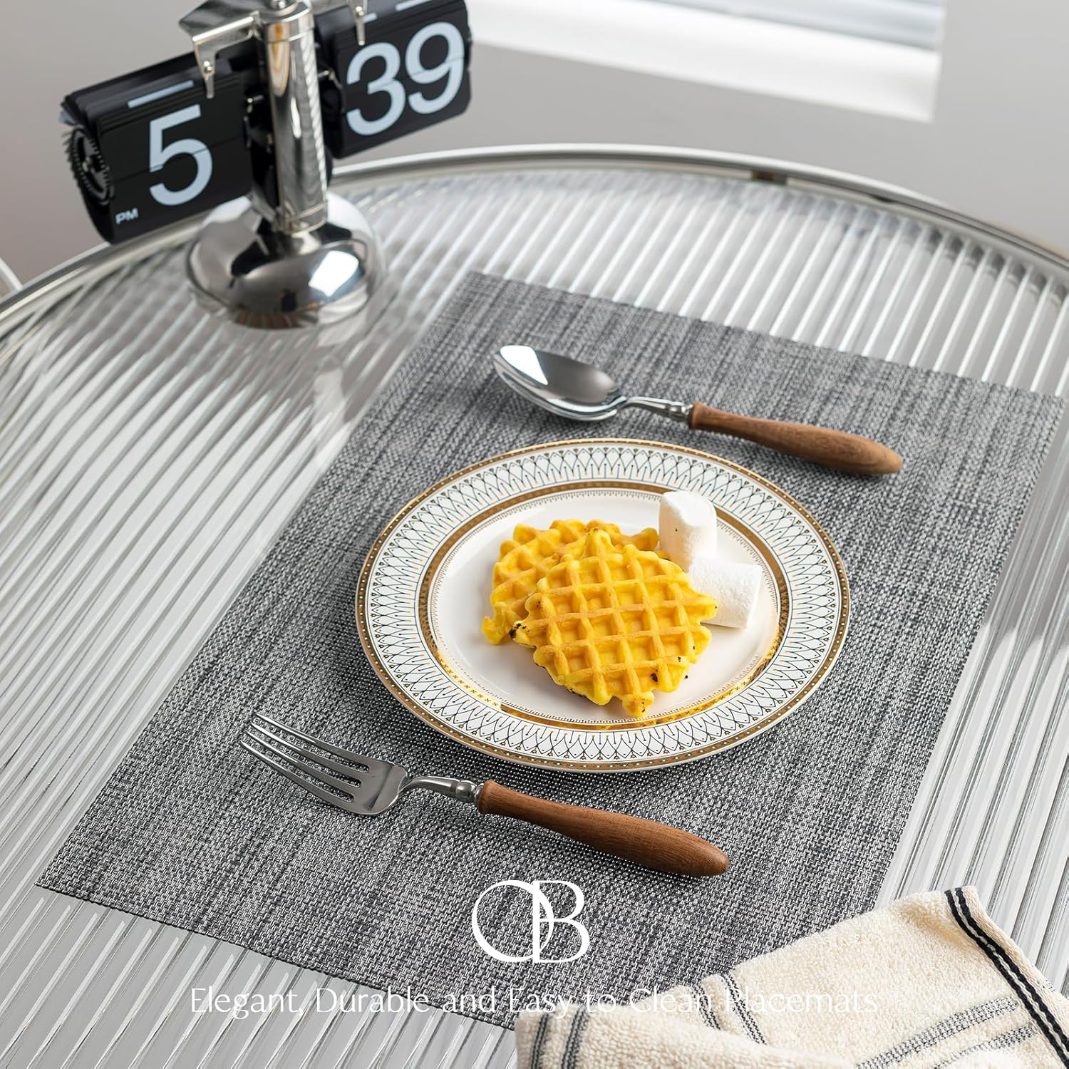 Placemats Set of 6 - Easy Clean Woven Vinyl Placemats for Dining Table, Indoor/Outdoor Place Mats, Washable PVC Table Mats(Dark Gray)