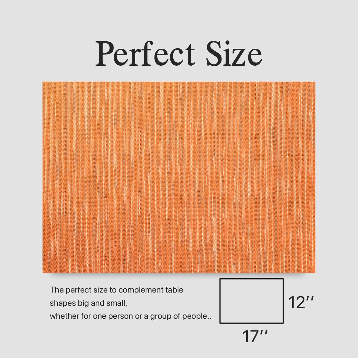 Placemats Set of 6 - Easy Clean Woven Vinyl Placemats for Dining Table, Indoor/Outdoor Place Mats, Washable PVC Table Mats (Orange)