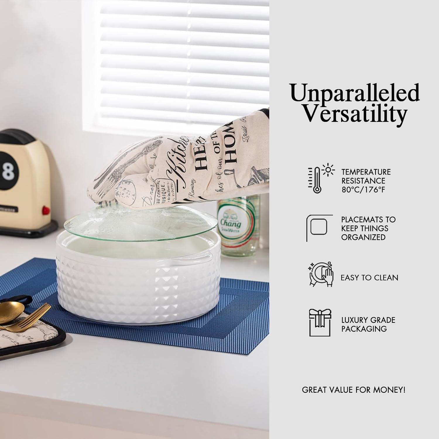 - Premium Quality and Durability: Onebento placemats are made from a high-quality blend of 70% PVC and 30% polyester, offering exceptional durability and aesthetic. This combination ensures long-lasting use and superior protection for your dining table, making it a perfect choice for quality-required consumers.
