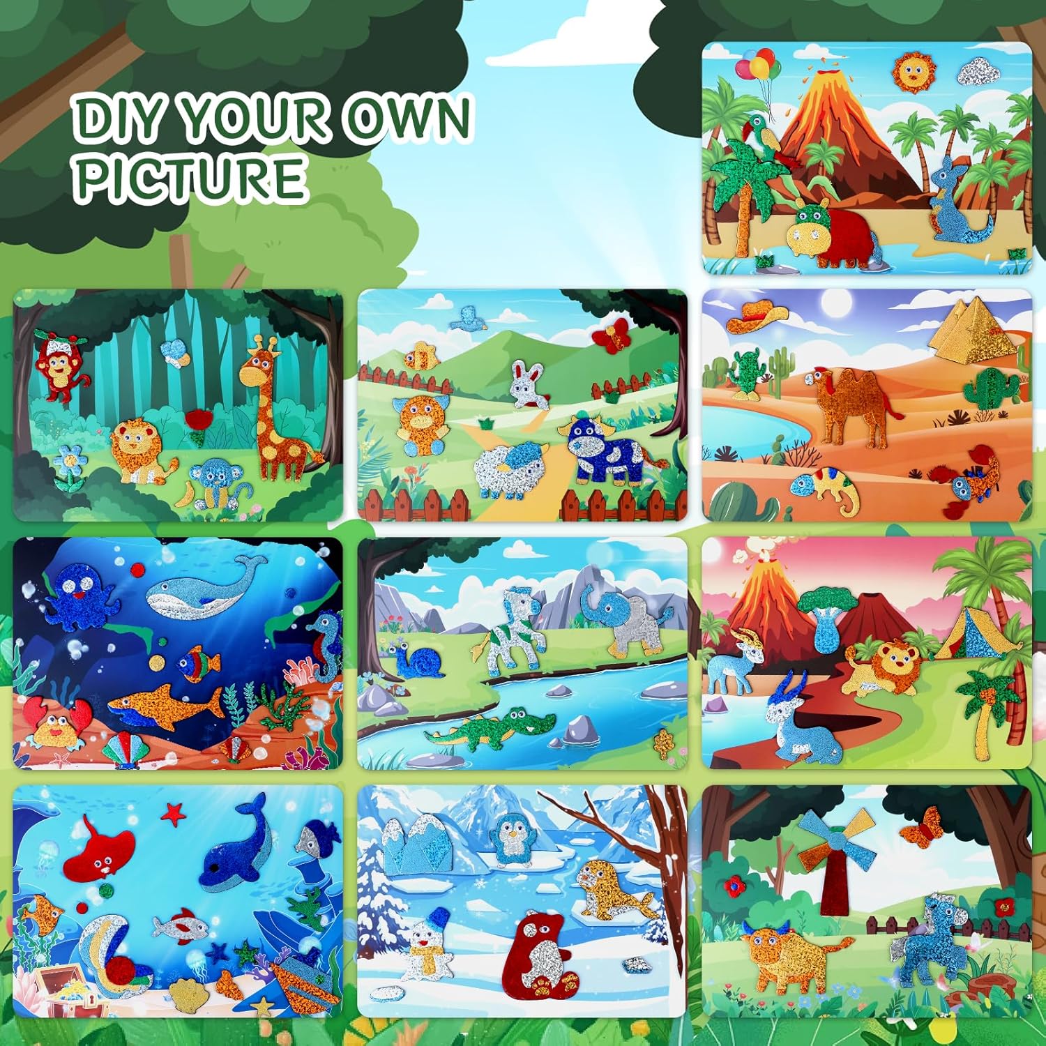 - MESS FREE COLORING: No glues or paints.Whether at home, at a friend's party, or in art class,kids can have fun without worrying about making a mess at all. Simply choose a favorite picture and decorate it with glittery foil for the animals to make your own perfect paper craft!