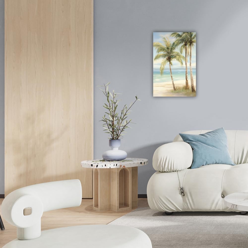 LURENCZH Tropical Beach Canvas Wall Art Seaside Palm Tree Picture Wall Decor Ocean Scenery Painting Prints for Bathroom Decor Framed(Beach-3,12.00" x 18.00")