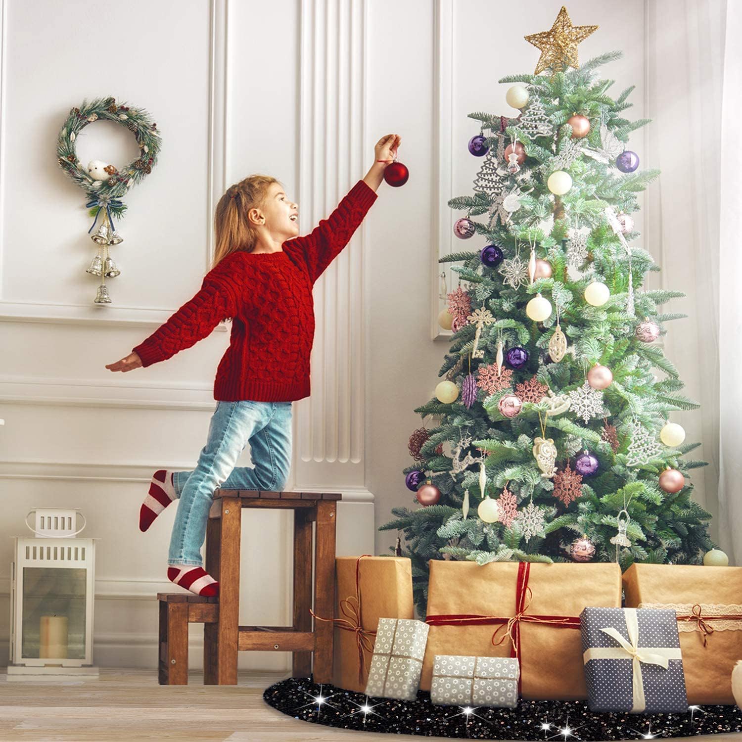 - ❄️【Size Detail - Large Christmas Tree Skirt 60 Inch】You will receive a 60 inches diameter black glitter sequins tree skirt, fits under 8-10 foot tall trees. You can put some gifts, Christmas boxes, Christmas ball on the xmas tree cover mat. The sparkly velour Christmas tree skirts is perfect for decorating your home and become part of your holiday tradition.