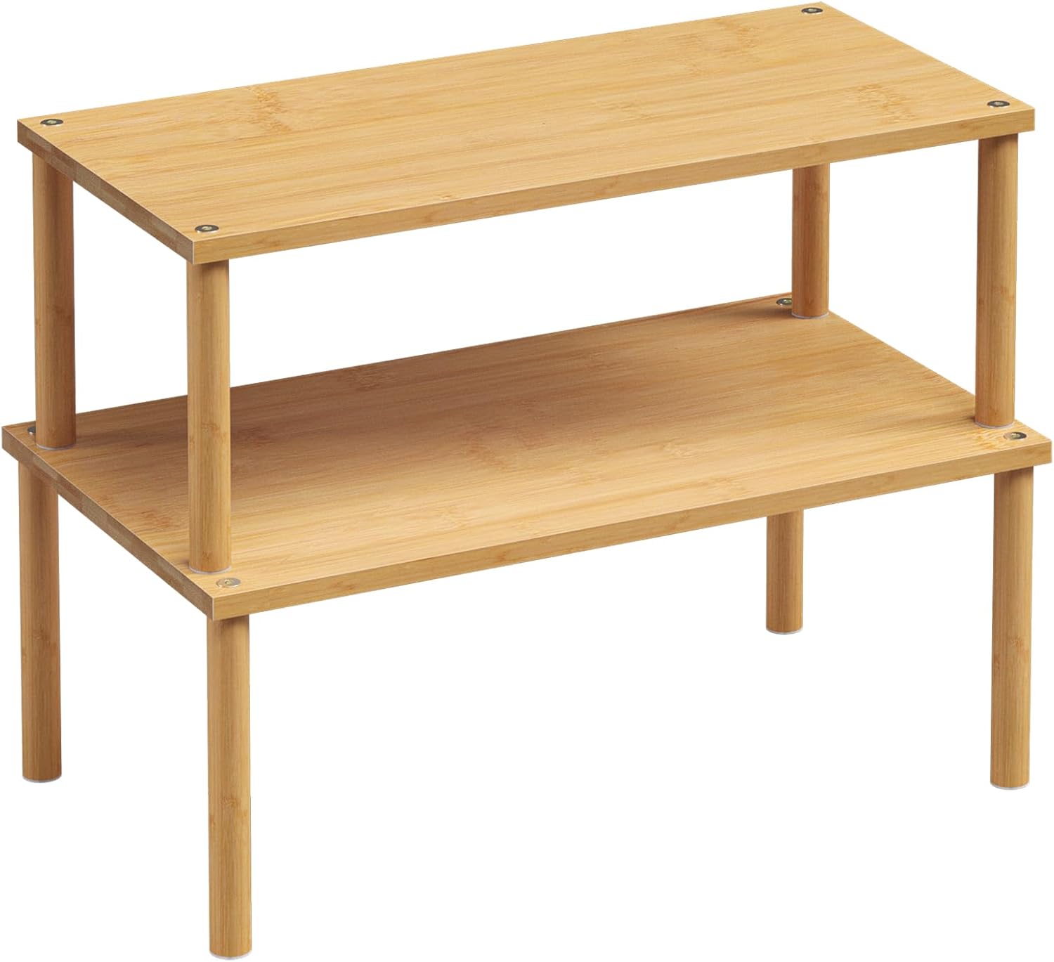 Cabinet Organizer Shelf(Set of 2),Kitchen Counter Shelves,Bamboo Stackable Expandable Spice Rack Countertop(Large)