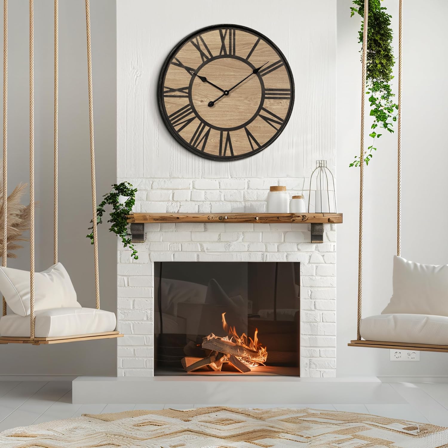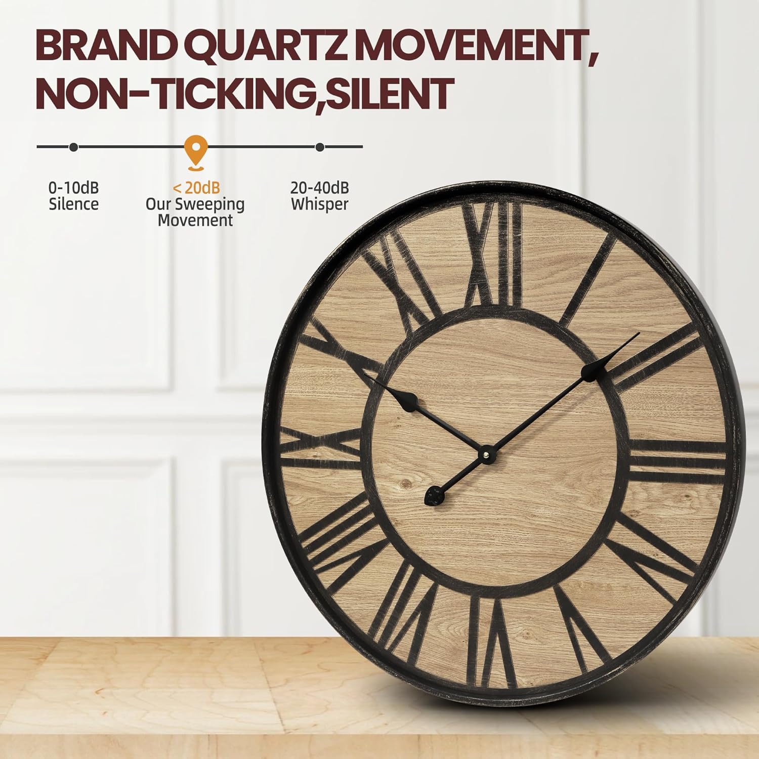 Large Wall Clock for Living Room Decor, Non Ticking Silent, Battery Operated Modern Vintage Wood Wall Clock Oversized Decorative Wall Clock for Bedroom Kitchen Farmhouse Office Decor