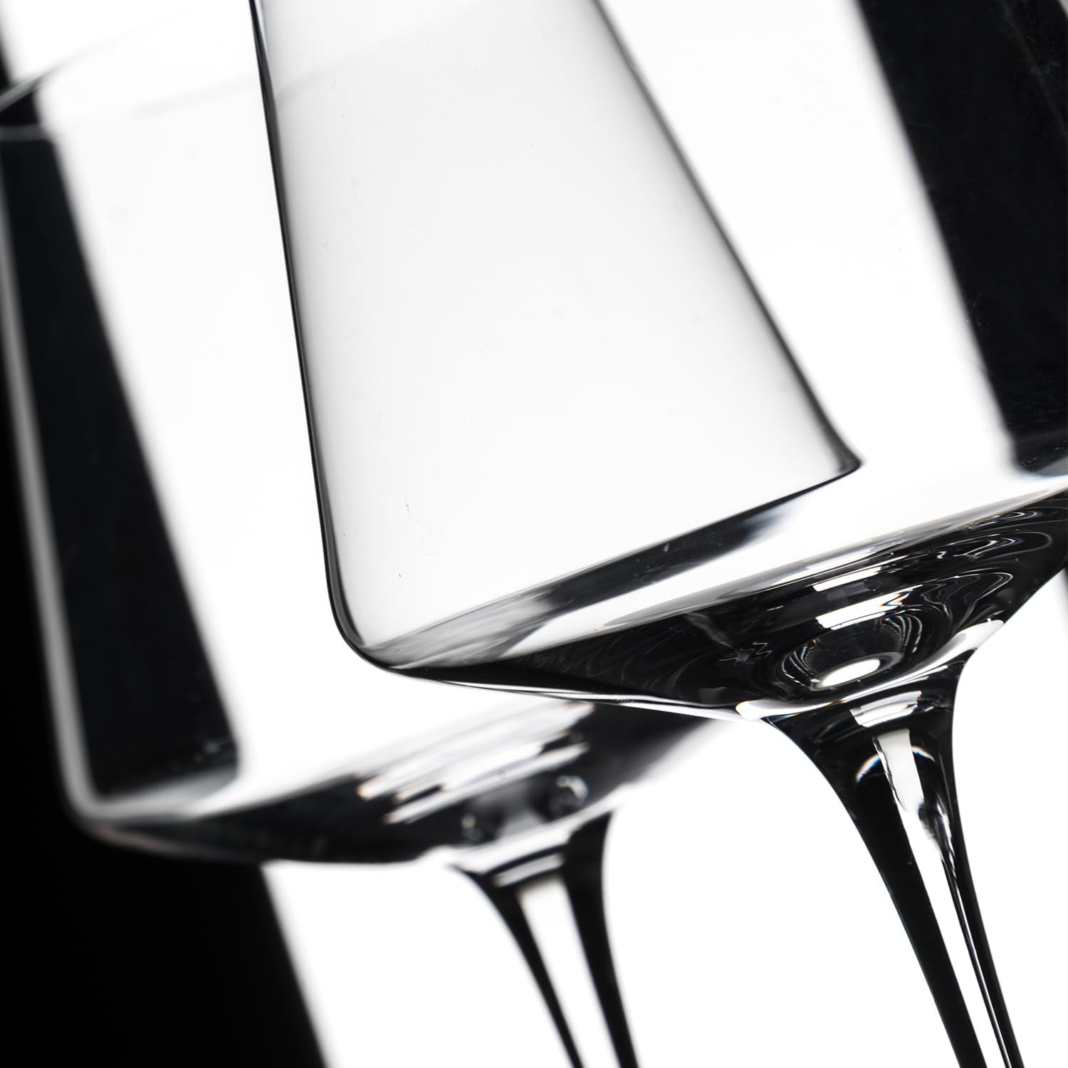 White Red Wine Glasses Set of 6 – 18oz Red Wine Glasses with Tall Long Stem,【Hand Blown】Crystal Wine Glasses- Square Wine Glasses with flat bottom, Wine gifts for Christmas, Wedding, Birthday,
