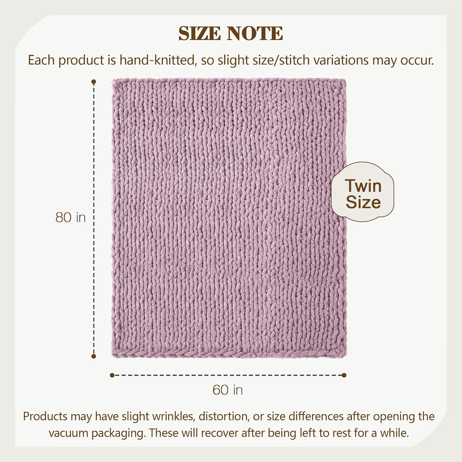 Carriediosa Chunky Knit Throw Blanket 60" X 80" Twin, 100% Hand Made Large Chenille Loop Yarn Soft Fluffy Throws for Couch Sofa Bed, Big Crochet Cozy Heavy Thick Cable Woven Blankets, Purple