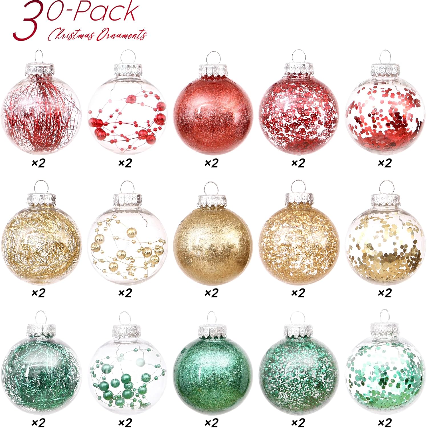 - TRANSPARENT & SPARKLING - These Christmas ball ornaments feature clear glaze base with sparkling decorations like glitter, sequins, tinsel and beads to provide a stunning shimmering look in the light. They will be perfect for decorating your home and become part of your holiday tradition