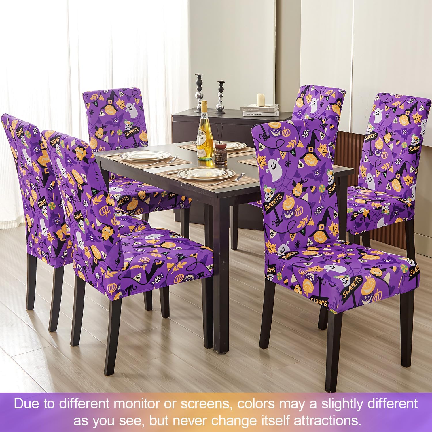 JQinHome Purple Halloween Chair Slipcover, Spider Web Chair Covers Set of 6, High Stretch Washable Chair Protector Cover for Dining Room, Kitchen,Home Party,Wedding Ceremony(Purple Candy,6PC)