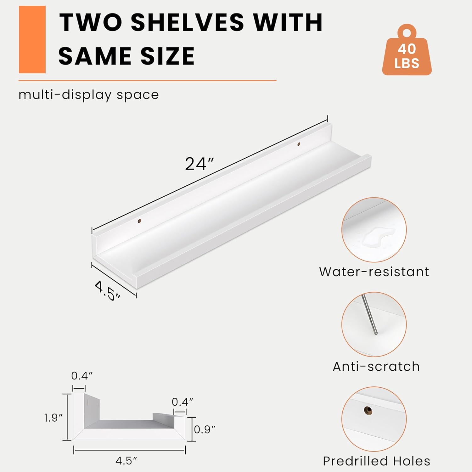 - Picture ledge Shelf for Walls: If you have dozens of pictures but don't know how to display them, Heimlove picture ledge shelves(especially large size) for walls are perfect! With our hanging shelves, store and display different types and sizes of photo frames in one place. The ledge in front of the wall shelves could prevent your precious items from falling off.
