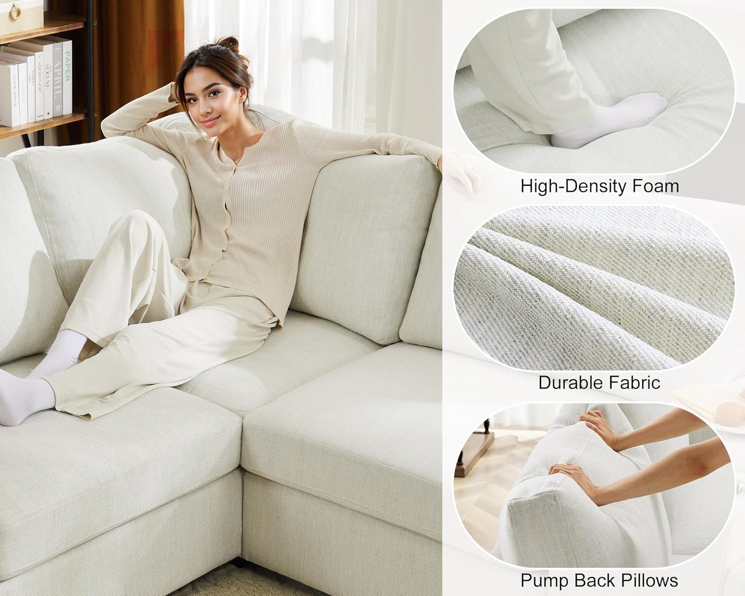 - DETACHABLE SOFA COVER - The sofa sectional combines style with practicality. The seat cushion covers and back pillow covers feature smooth zippers, making them removable and washable for effortless maintenance and ensuring long-lasting freshness.