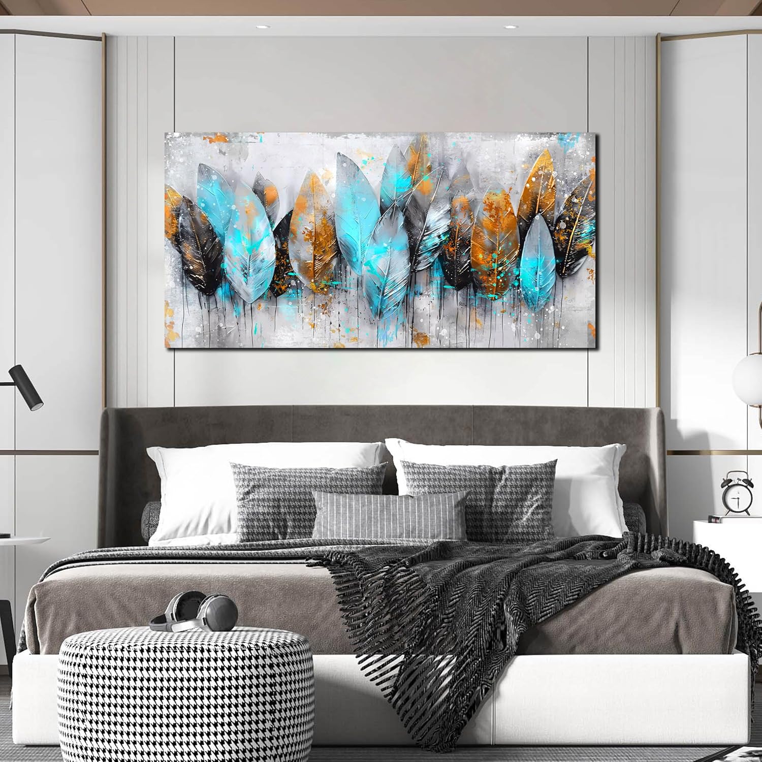 - HI-Q MATERIAL: High quality, HD prints on premium canvas,fading resistant indoor. Leaf canvas wall art,Modern blue and gray living room wall art