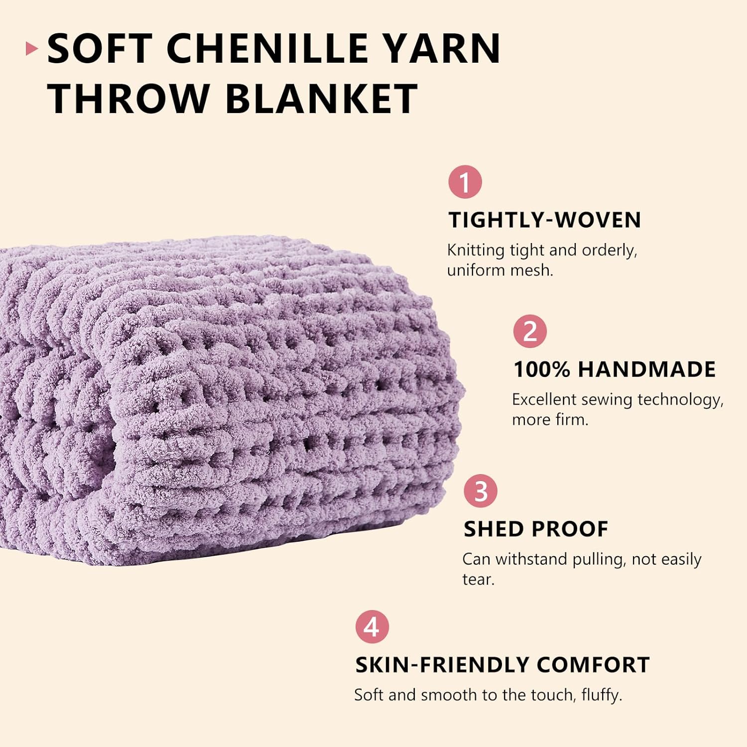 - 100% Handmade Chunky Knit Blanket: Our knit blanket throw is made from 100% hand-woven fabric with premuim Chenille yarn, excellent handcrafted knitting improves yarn density to create a warm and soft touch, full body hug to immerse you in tenderness