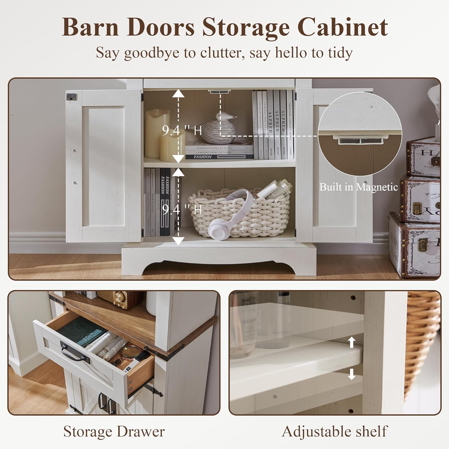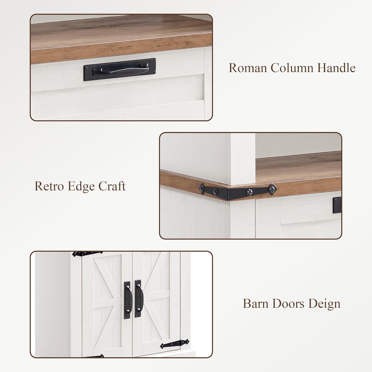 - 4-Tier Open Shelf Design : Each of the 3 shelves is free to move, allowing you to adjust the height to suit different item. adjustable shelf inside the hutch as well which can offer customized storage space.