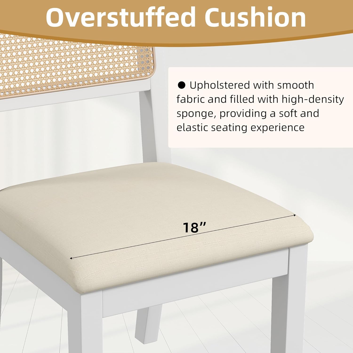 Westice Rattan Dining Chairs Set of 2, Farmhouse Natural Dining Room Chairs with Upholstered Cushion, Wood Armless Chairs for Kitchen/Restaurant, White