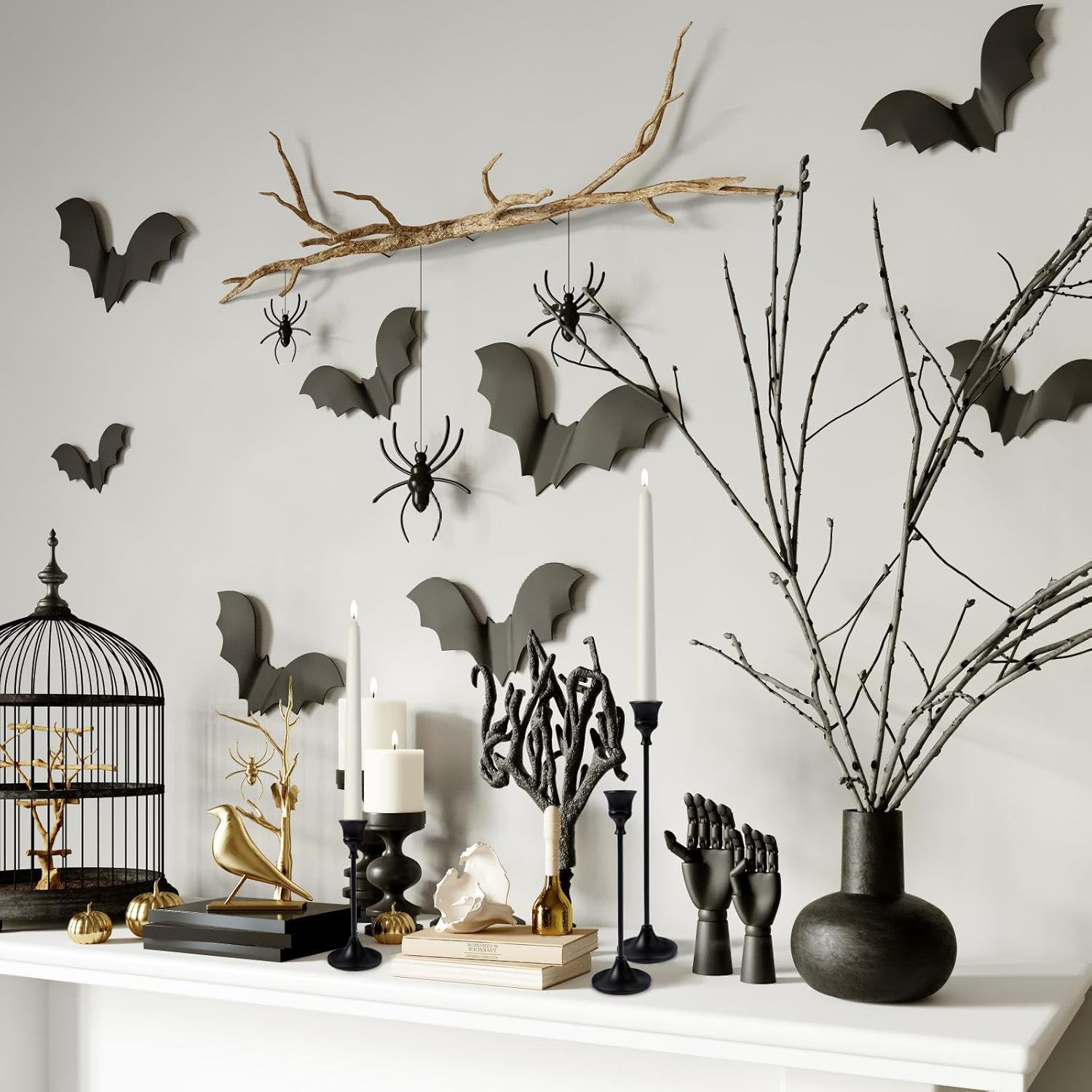 Metal Candle Holders for Candlesticks Taper Candlestick Holders Set Vintage Decorative Centerpiece Candelabra Tall Candle Stands for Halloween Thanksgiving Christmas (Matt Black, 4 Sets (12 pcs))