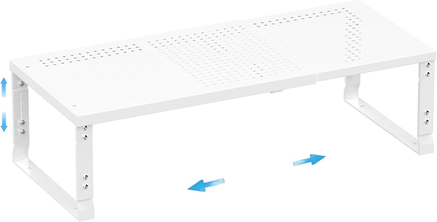 - ⭐【Expandable,Stackable】The shelves can easily expand and contract according to your storage needs, whether it is kitchen clutter or office supplies.You can combine multiple shelves together to form a large storage system, or separate them into several separate smaller units(Measure:8.11"D x 16.54"W~27.17"W x 8.31"H/7.68"H/7.05"H/6.42"H)