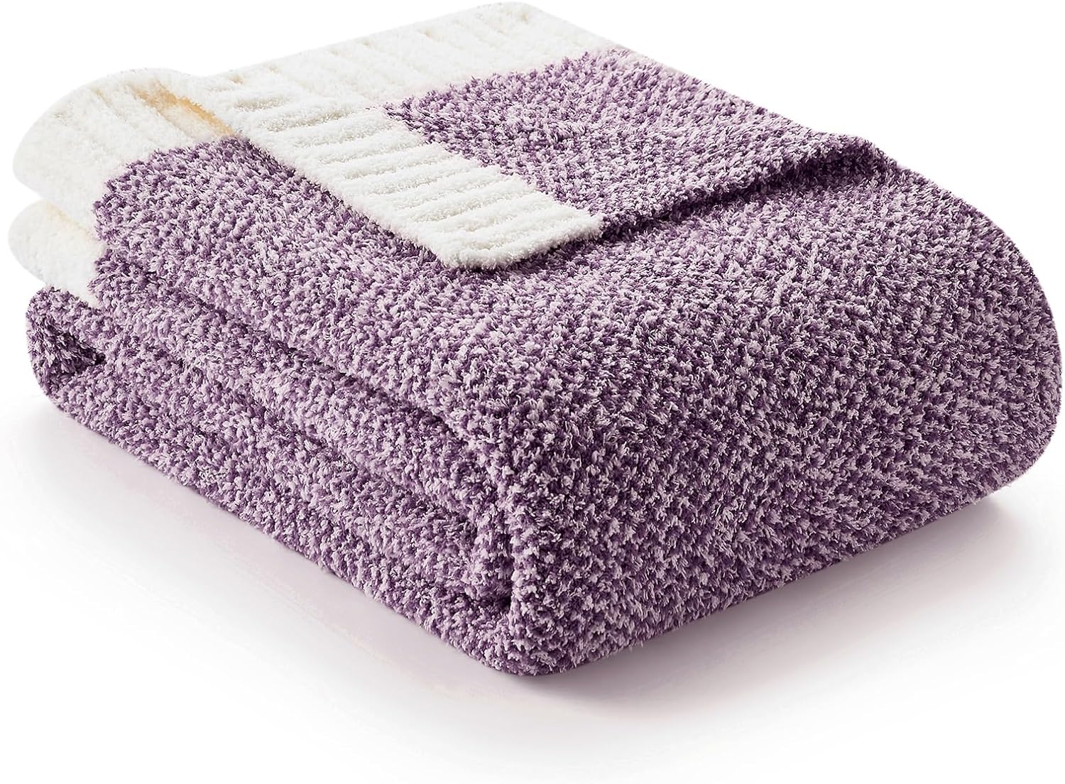 Snuggle Sac Purple Throw Blankets for Couch, Super Soft Warm Blankets Cozy Knit Fuzzy Plush Lightweight Throws for Sofa, Bed,Living Room, Heather Purple, 50x60 inches