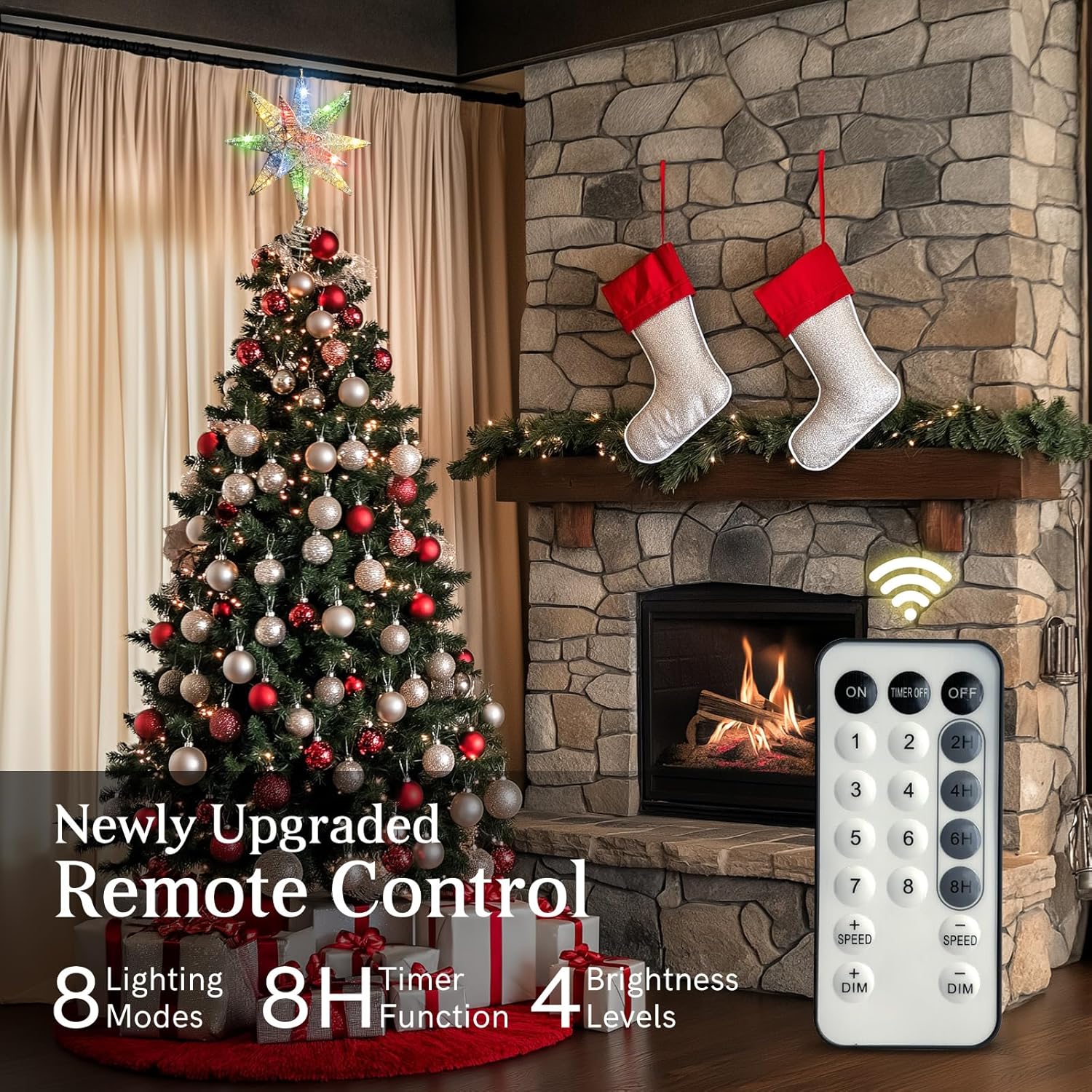 - 🎄 Christmas Star Tree Topper: This 3D geometric colorful light star tree topper has a spiral base so you can easily attach it to the top of the Christmas tree. Perfect for Christmas trees of all sizes, it will create a romantic and festive atmosphere to your Christmas party
