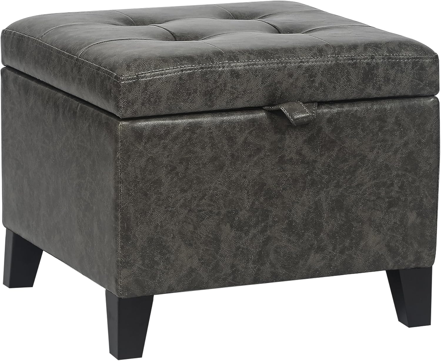 Adeco Faux Leather Storage Ottoman Bench with Wood Legs, 17.7" Square Mixed Grey PU Cube Foot Stool, Upholstered Button Tufted Vanity Chair with Hinged Lid for Living Room, Bedroom, Dorm