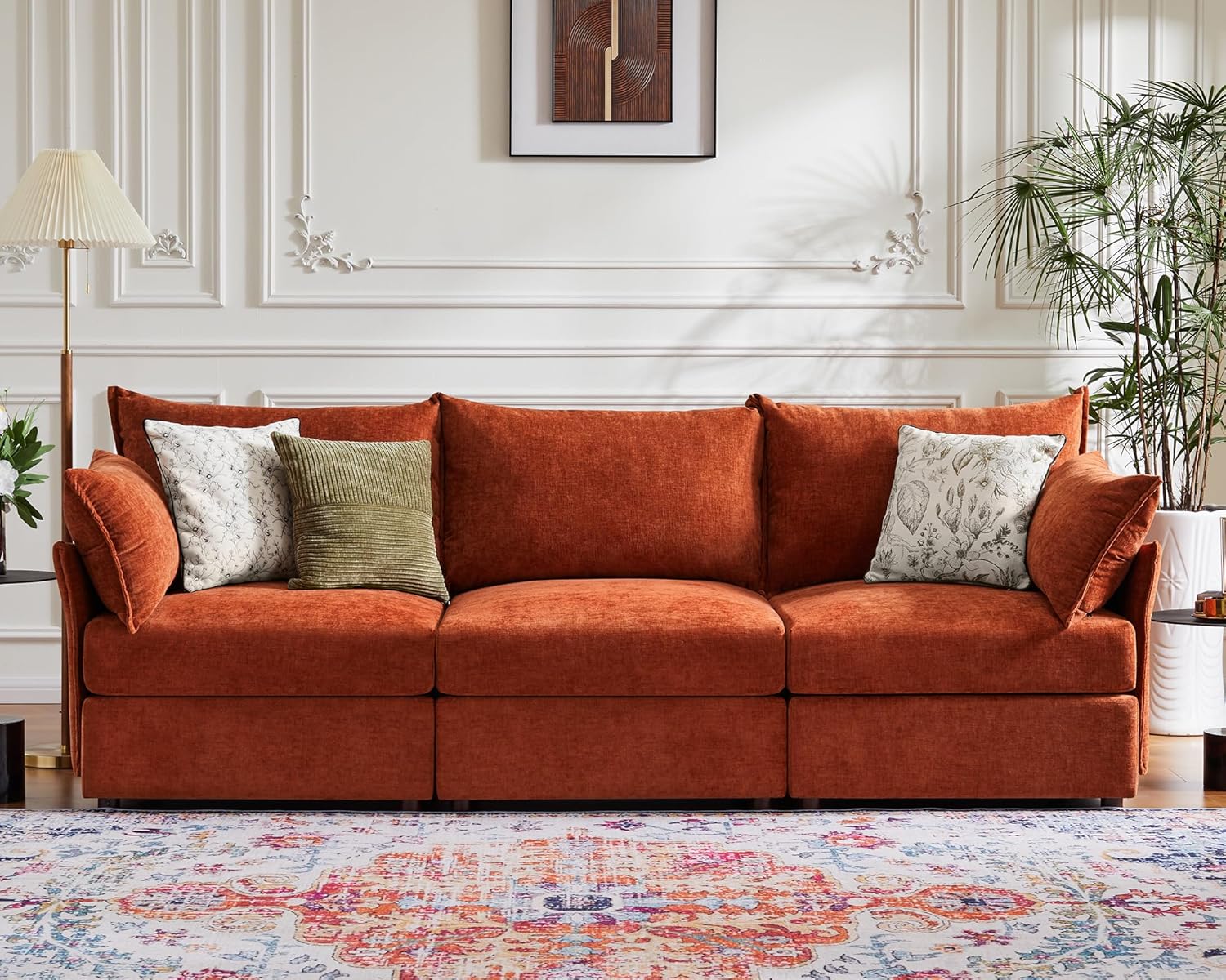 102.6" Modular Sectional Sofa, Oversized 3-Seater Terracotta Orange Couch with Removable Chenille Fabric Cover, Deep Seat & High Backrest for Living Room, Office & Apartment