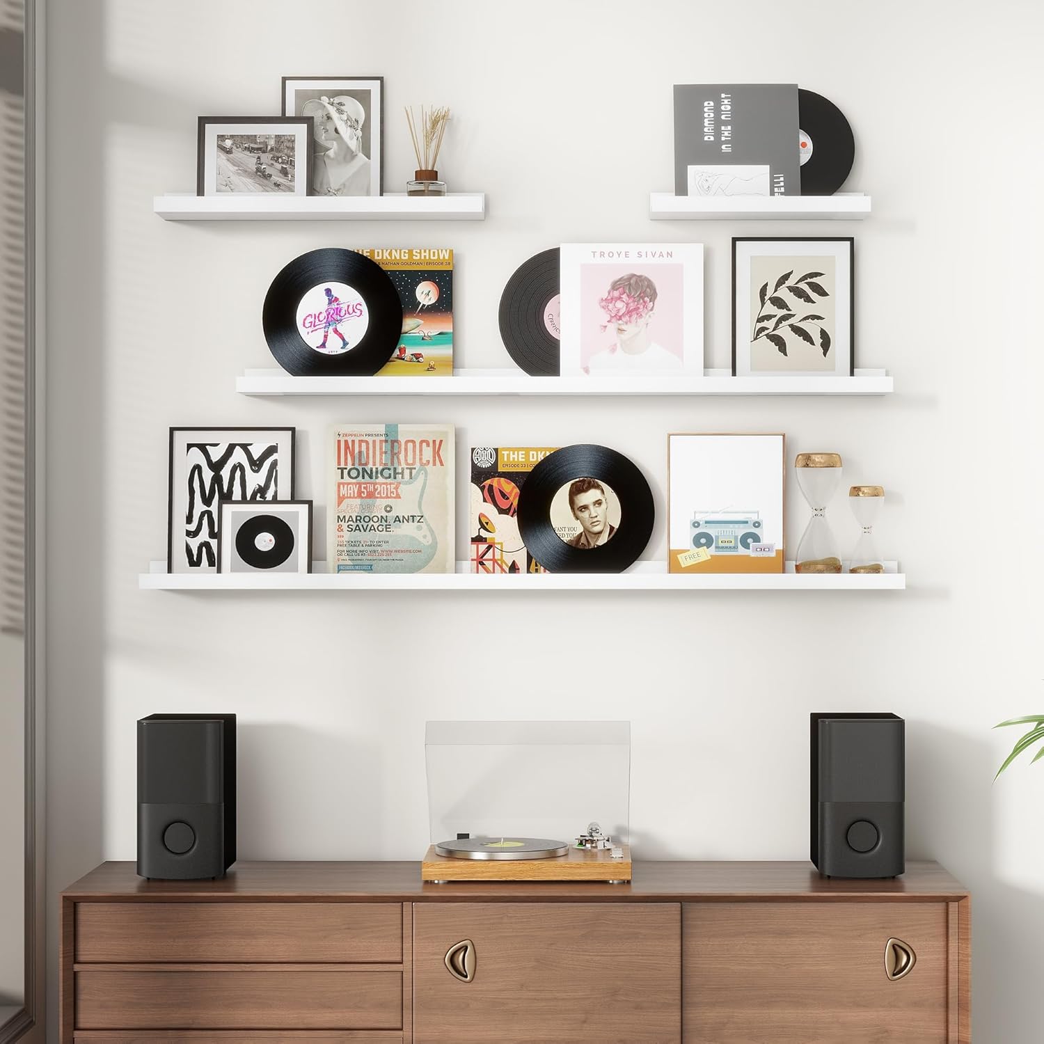 - Multi-scene & Functional: The wall-mounted shelves are designed for decoration and storage, utilizing and decorating any space in your home. Used as shelf decor to show your collection, books, or prize, the hanging shelves are perfect for displaying your photo frame, small plants, model, or audio in your living room, office, study. And can also use as over the toilet storage shelf in the bathroom to hold toiletries or used as a kitchen shelf to store condiments
